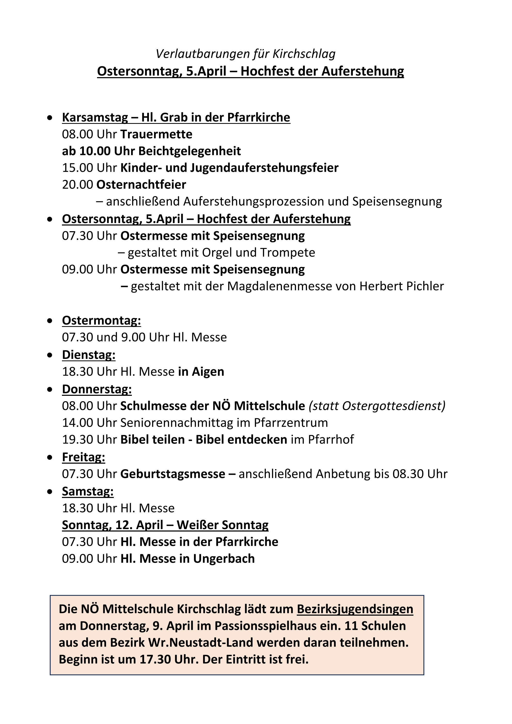 Auferstehungsfeier für Kinder und Jugend am Karsamstag 15.00