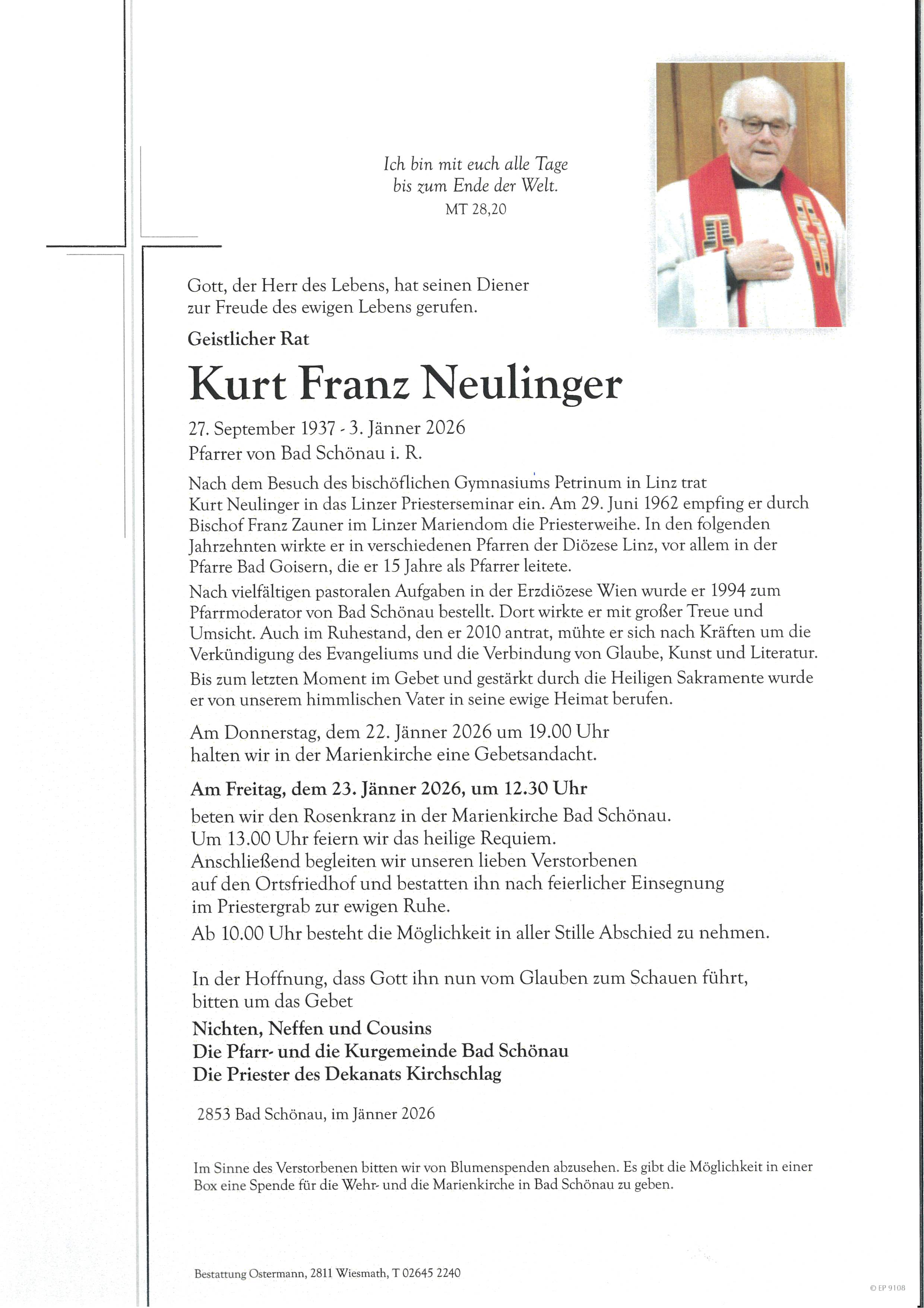 Altpfarrer Kurt Neulinger verstorben