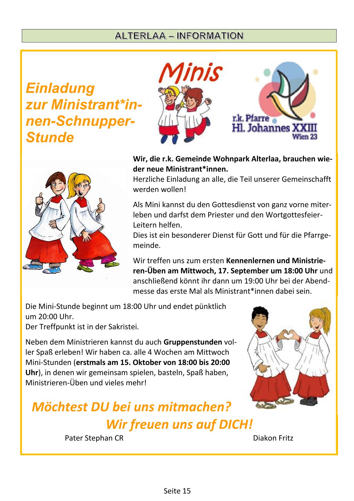 Wenn Du auch Ministrant/Ministrantin sein möchtest, rühr Dich beim Pfarrer oder bei den Ministrantenleiter Georg.