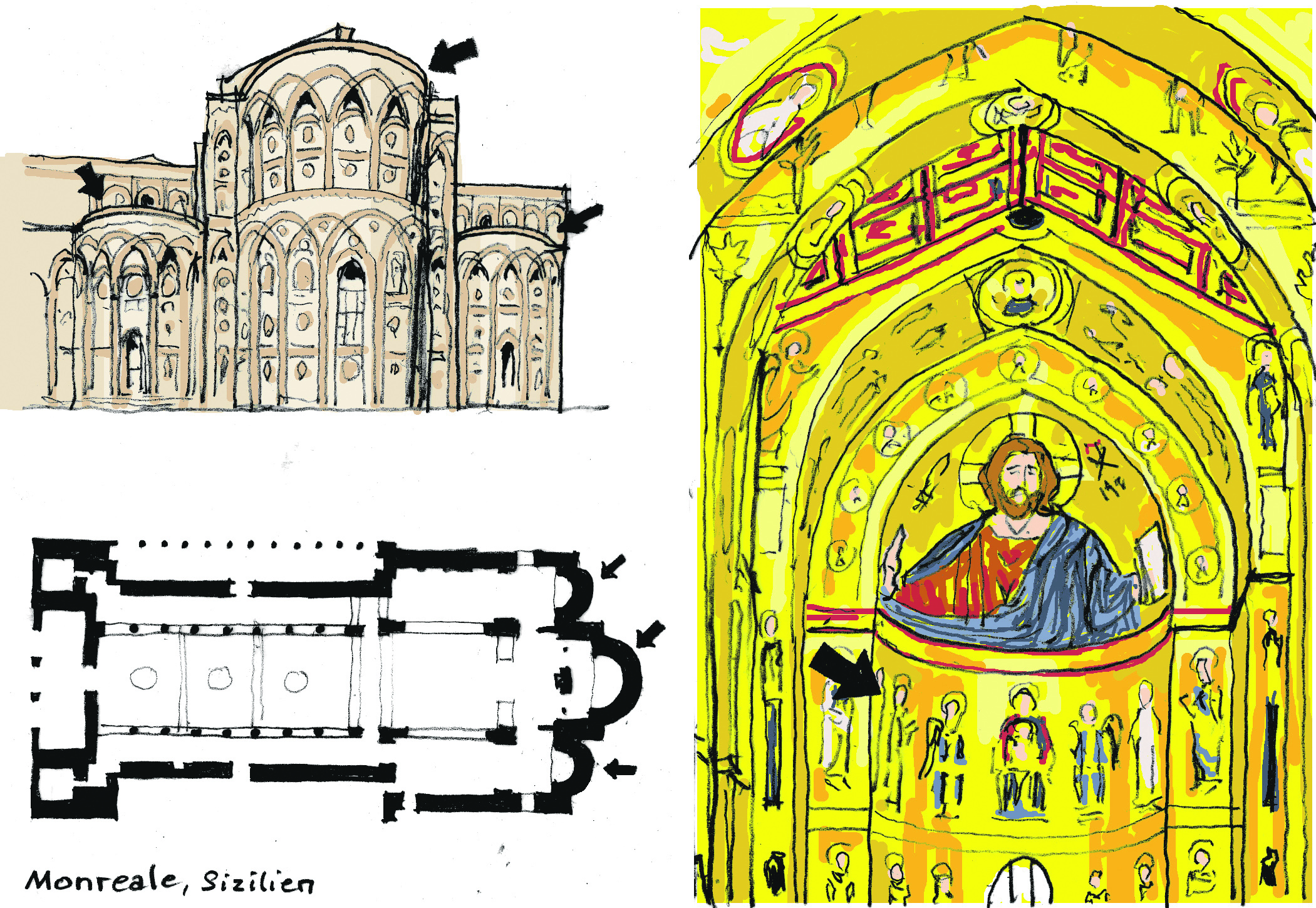 Es gibt auch Kirchen, die nebeneinander gleich mehrere Apsiden aufweisen.