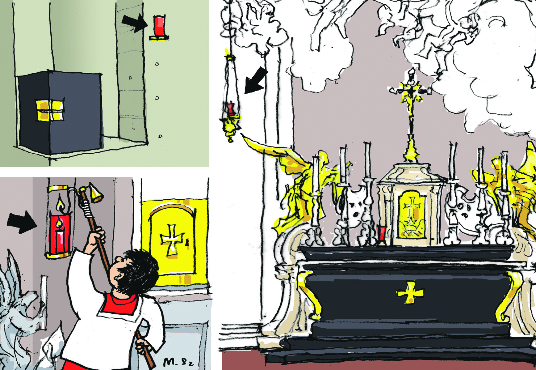 Schon im jüdischen Tempel in Jerusalem brannte Tag und Nacht ein Leuchter, um an die Gegenwart Gottes zu erinnern – das ist auch heute noch in den Synagogen so, wo eine Lampe vor dem Schrein mit den Schriftrollen brennt.