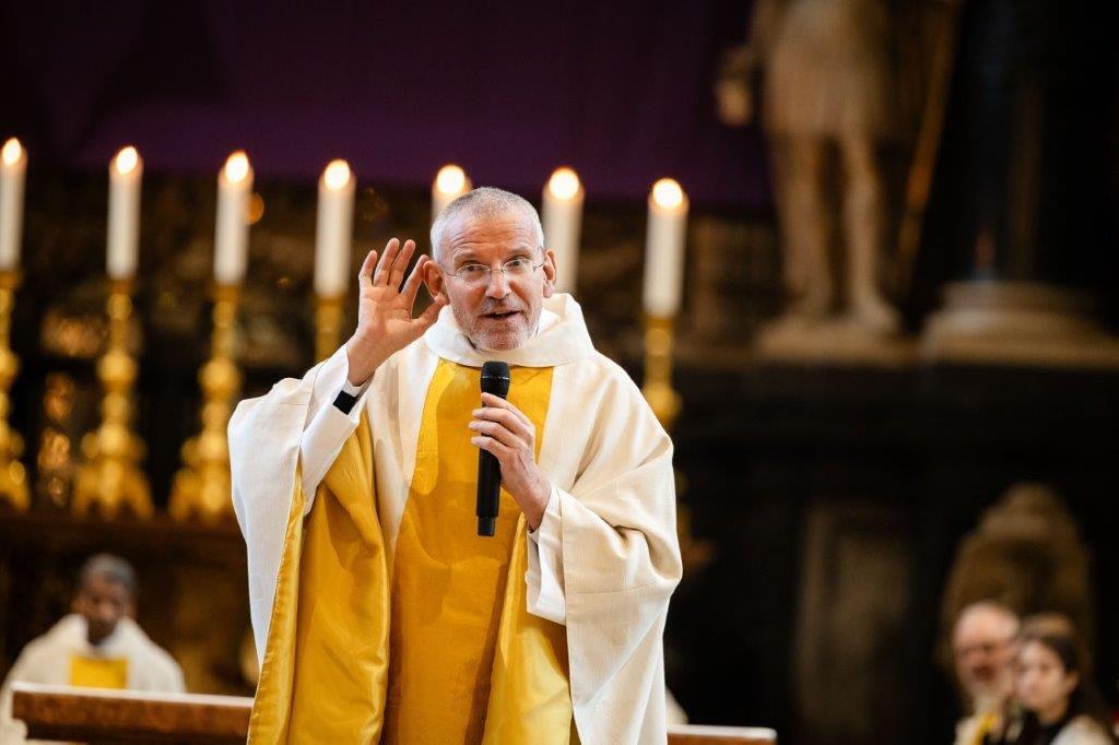 Krasa stellte schließlich den Mitfeiernden die Frage: „Was ist dein göttlicher Ohrwurm?“ Er stellte klar: „Christ sein heißt Gottes Ohrwurm in dir zu hören und vielleicht ab und an auch zu singen.“