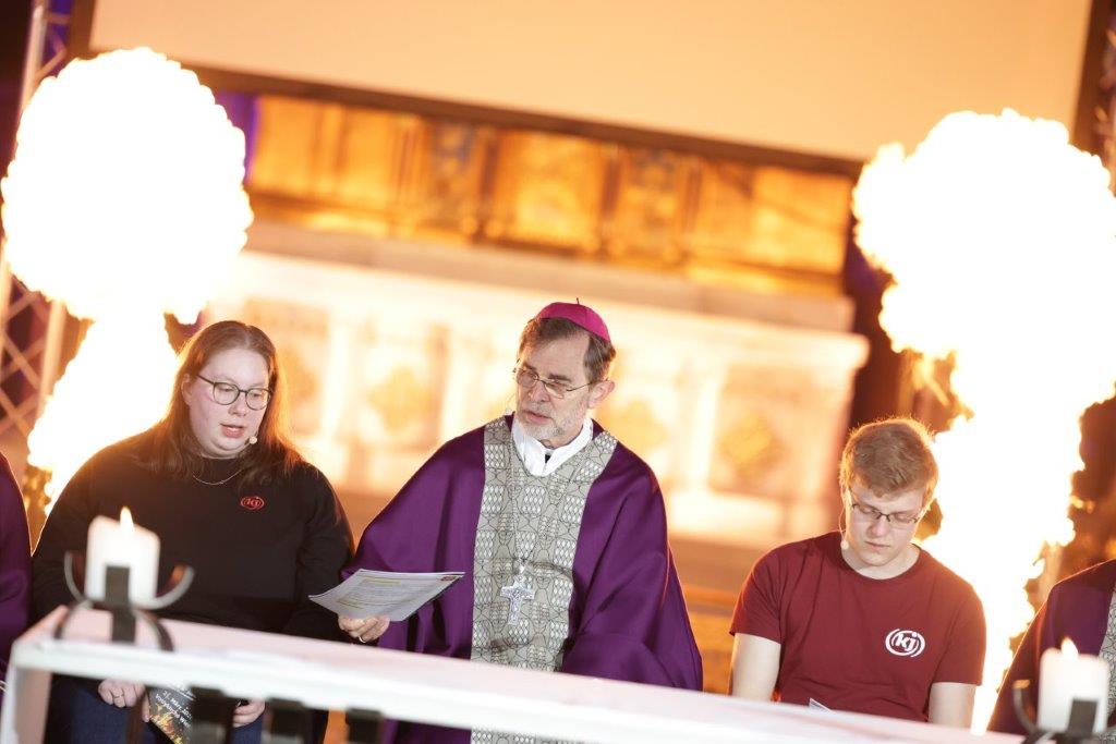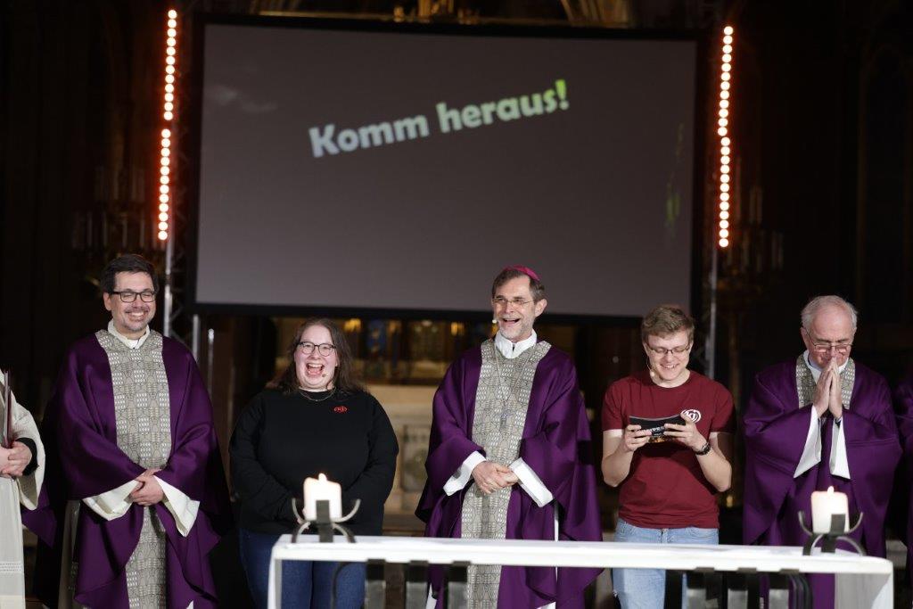 Der Höhepunkt und Abschluss des Tages war die Messe, die unter dem Motto „Komm heraus!" stand. Die musikalische Begleitung und die beeindruckenden Flamejets trugen zur besonderen Atmosphäre bei.