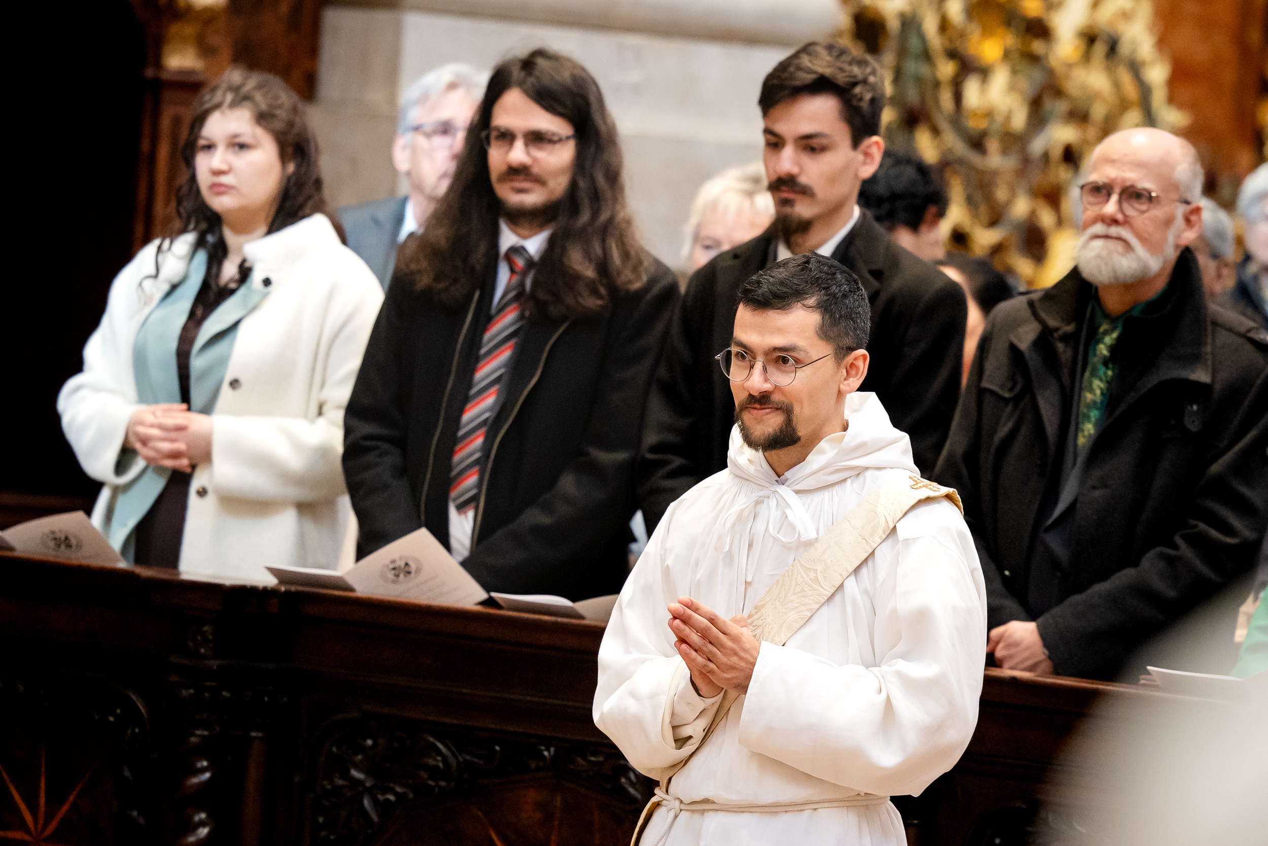 Frater Dominicus M. Armbruster, 1997 in Donaueschingen/D geboren, beschloss nach einem Berufungserlebnis, Theologie zu studieren. Drei Jahre verbrachte er dazu in Heiligenkreuz sowie Assisi. Mit 22 Jahren trat er in den Dominikanerorden ein und kam 2021 aus dem damaligen Noviziatskonvent von Worms nach Wien ins Dominikanerkloster S. Maria Rotunda. Hier lebte fr. Dominicus im Studienhaus der Ordensprovinz und absolvierte ein Theologiestudium an der Universität (mit Magister-Abschluss 2025). Daneben baute der medienaffine Dominikaner auf Instagram und TikTok seine Kanäle „gottundso“ mit kurzweiligen Videos zu Gott und zum katholischen Glauben immer weiter aus.
