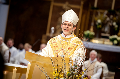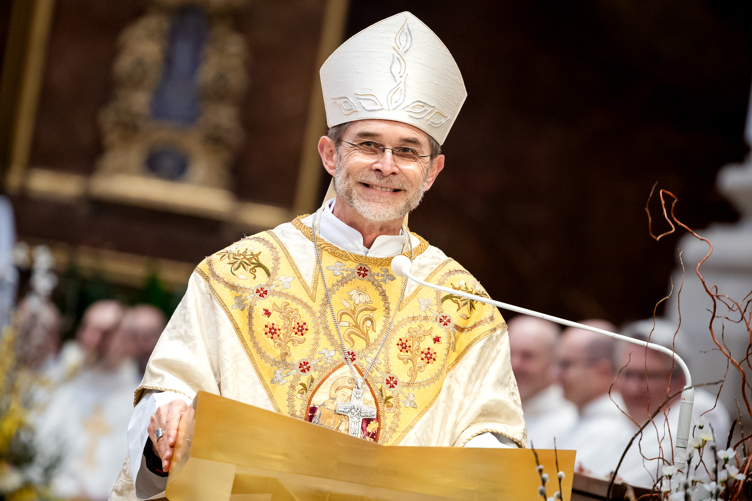 In seiner Predigt betonte Hauptzelebrant und Weihespender Josef Grünwidl mit Blick auf den Weihekandidaten gleich zu Beginn: „Du übernimmst heute einen Dienst. Es ist ein Dienstamt, das Priester in der Kirche ausüben. Es ist ein Dienst für Gott und für die Menschen.“