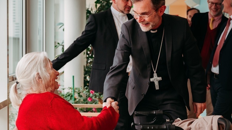 Die Kolping-Einrichtungen seien ein wichtiges Zeichen für das Miteinander in Österreich: Erzbischof Josef Grünwidl würdigte bei seinem Besuch im Kolpinghaus in Wien-Favoriten das Konzept der Häuser "Gemeinsam leben", in dem Menschen verschiedener Generationen unter einem Dach wohnen. "Die Arbeit hier zeigt, es funktioniert, dass sich jüngere Menschen für ältere einsetzen und umgekehrt, damit alle gut leben können", sagte Grünwidl bei einer Segnungsfeier mit den Bewohnerinnen, Bewohnern und Mitarbeitenden des Hauses am Mittwoch.