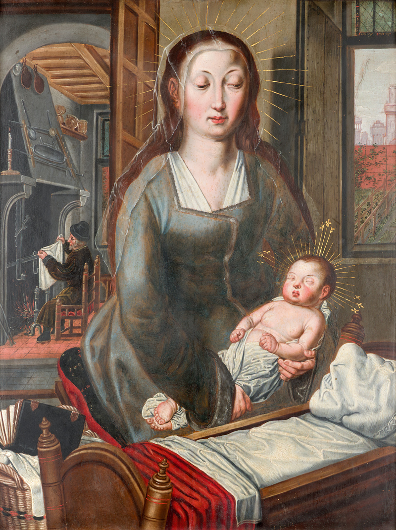 Die Direktorin des Museums, Johanna Schwanberg, führte den Präsidenten des ÖGB, Wolfgang Katzian, und Erzbischof Josef Grünwidl durch die aktuelle Sonderausstellung „Alles in Arbeit“. Dabei kamen sie anhand der Ausstellungsobjekte über die verschiedenen Formen und Bilder der Arbeit ins Gespräch. Direktorin Schwanberg zeigte beispielsweise den ersten Computerarbeitsplatz (Lowell Nesbitt, Öl auf Leinwand,1965), erläuterte, dass harte Arbeit erst mit Beginn des 20. Jahrhunderts in der Kunst dargestellt wurde und warf die Frage auf warum manche Arbeit bezahlt wird und manche nicht. Beim Bild „Maria mit Jesuskind“ (anonym, Öl auf Leinwand, 16. Jhd.) zeigt ein Detail wie früh teilweise die Arbeitsverteilung unter den Geschlechtern diskutiert wurde. Maria ist mit Jesus auf dem Arm im Vordergrund zu sehen, während im Hintergrund Josef die frisch gewaschenen Windeln aufhängt.
