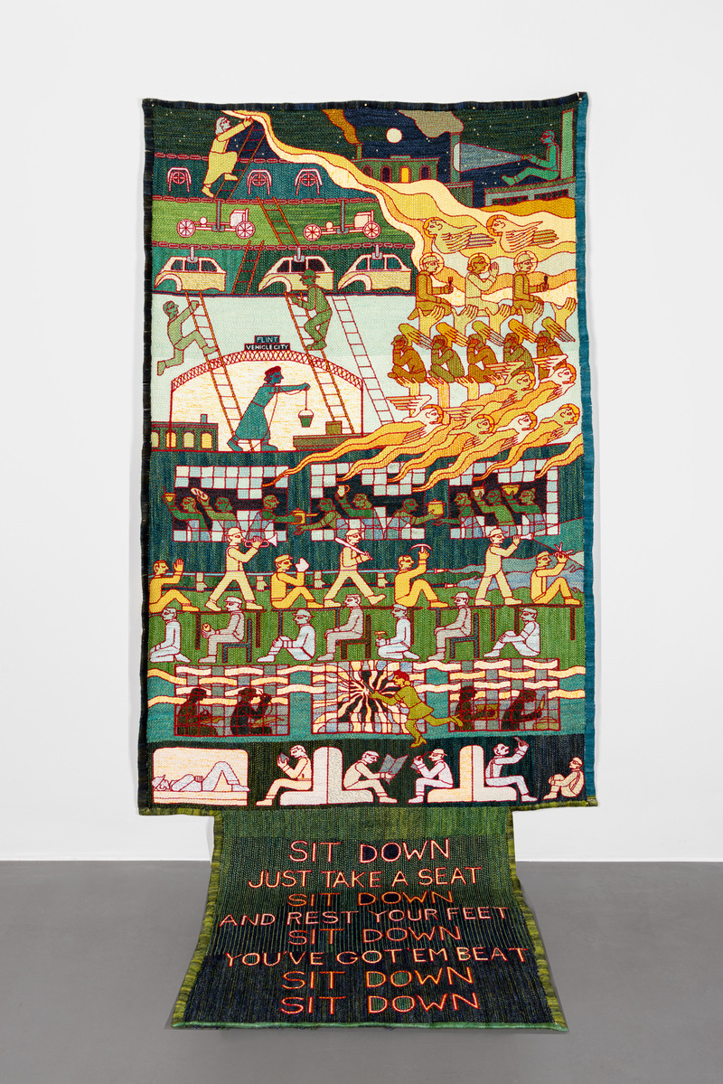 Wie wichtig Streik im Zusammenhang mit der Arbeit ist, verdeutlicht das Textilobjekt „Sitdown“ (Arnold, 2025). ÖGB Präsident Wolfgang Katzian erklärte an dieser Stelle, dass das Streikrecht weltweit das am meisten gebrochene Menschenrecht ist.