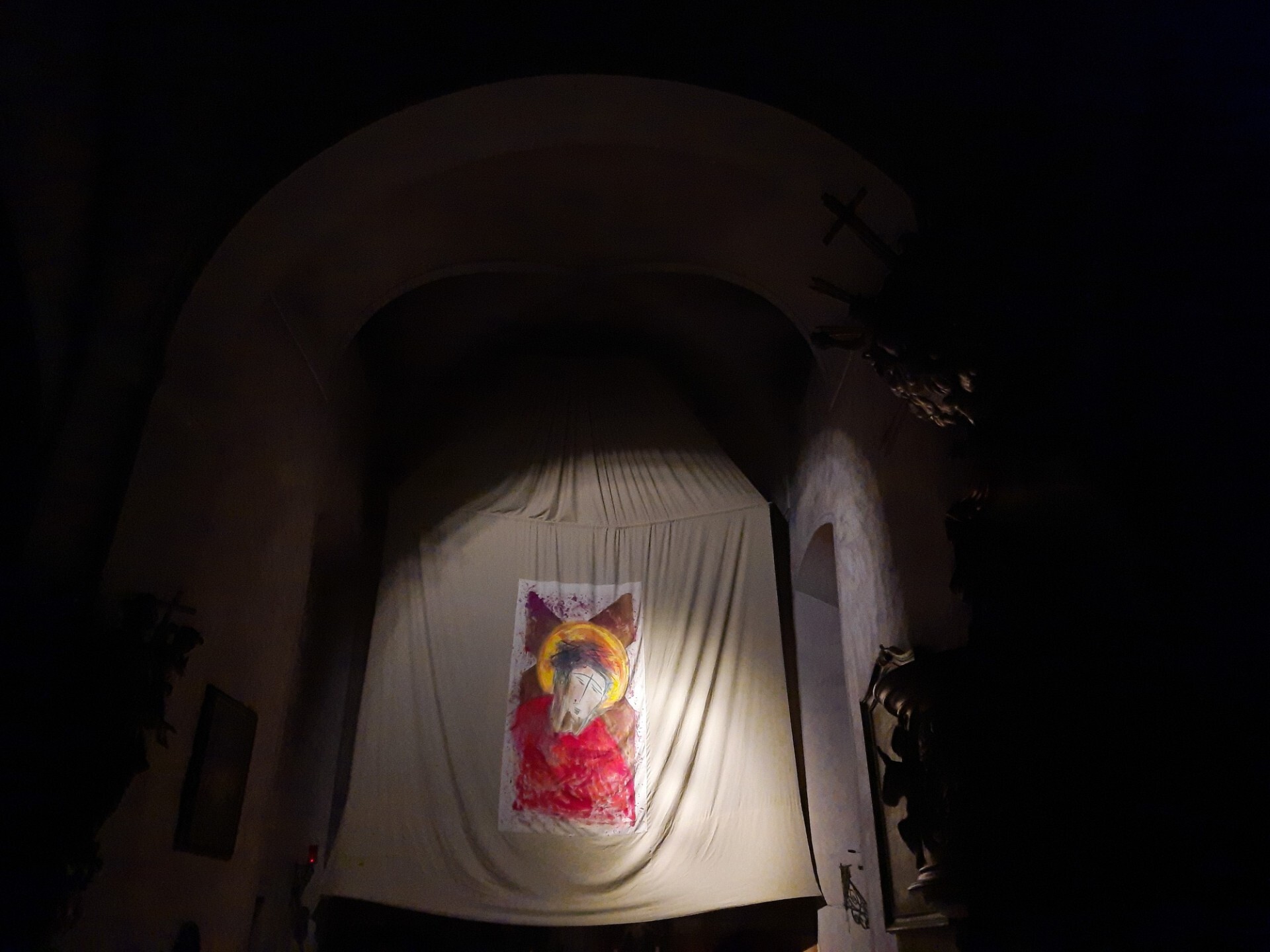 Das Fastentuch in der Pfarrkirche wurde durch Künstlerin Doris Haring aus Wien neu gestaltet, durch Frau Johanna Loidl neu fixiert und durch die Jakobirunde Gaaden dankenswerter Weise mit einer neuen Aufhängung versehen.