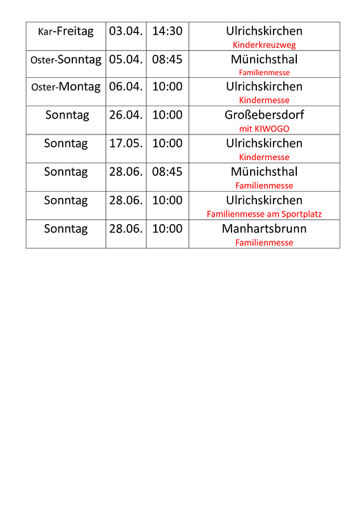 Kinder- und Familienmessen im PV "Tor zum Weinviertel"