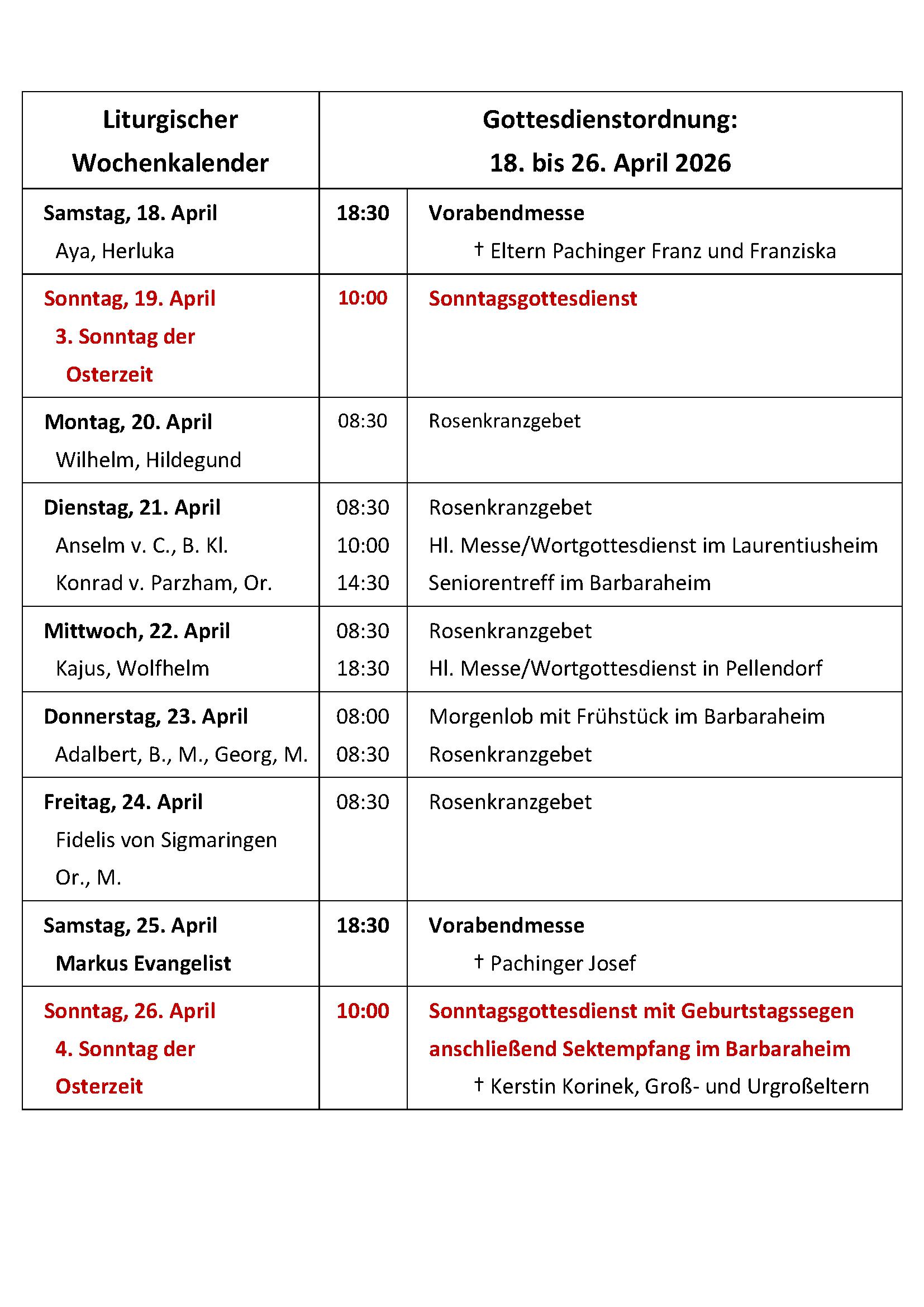 Namenstage Hl. Konrad von Parzham, Hl. Anselm von Canterbury