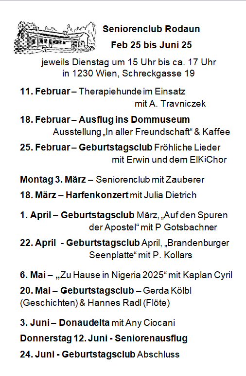 Fr               09.00 - 12.00             in der Pfarrkanzlei Rodaun, Schreckgasse 19