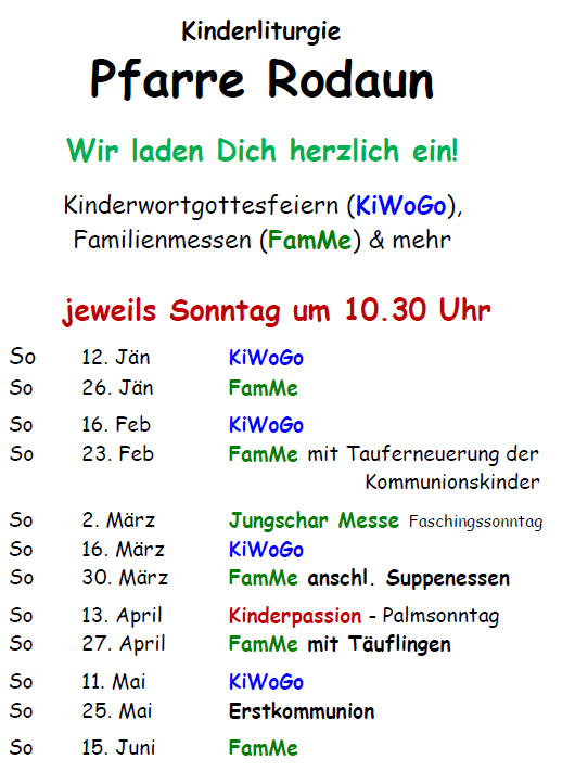 sowie Feiern im Jahreskreis (Erntedank, Startfest, Jungscharmesse, ...)