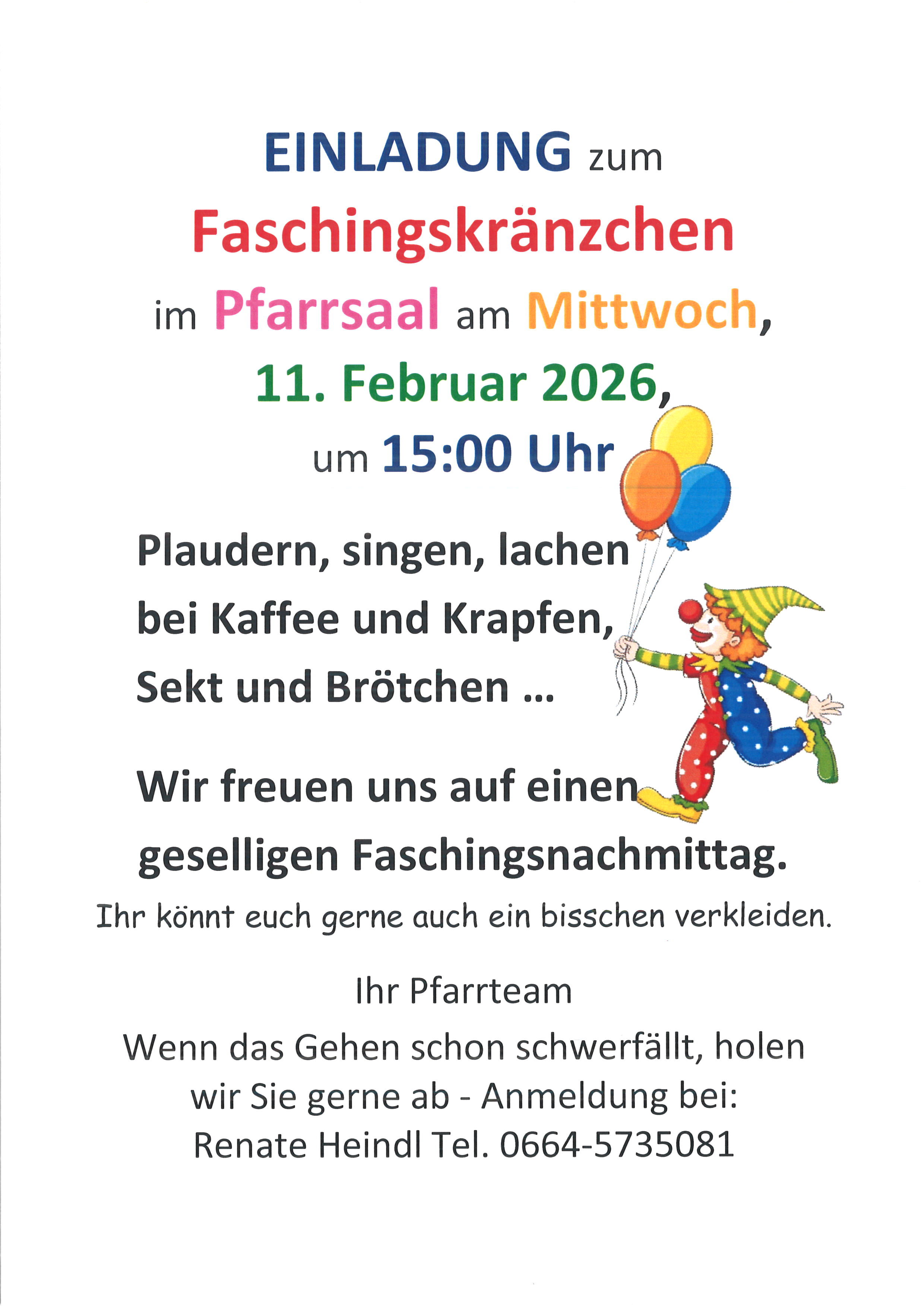 Mittwoch: 18.00 in Ginzersdorf (ausser 1. Mittwoch im Monat)