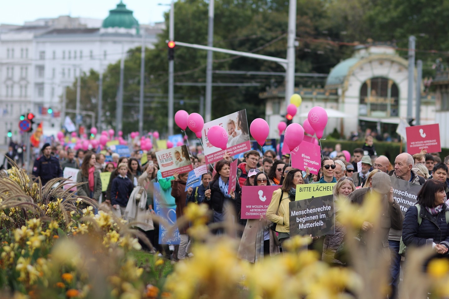 Verein Marsch fürs Leben: "Es gibt kein Recht auf Abtreibung. Aber es gibt sehr wohl ein Recht auf Leben, ein Recht auf Freiheit und Sicherheit, und ein Verbot von Folter. Wann gelten diese Menschenrechte auch für das ungeborene Kind?"
