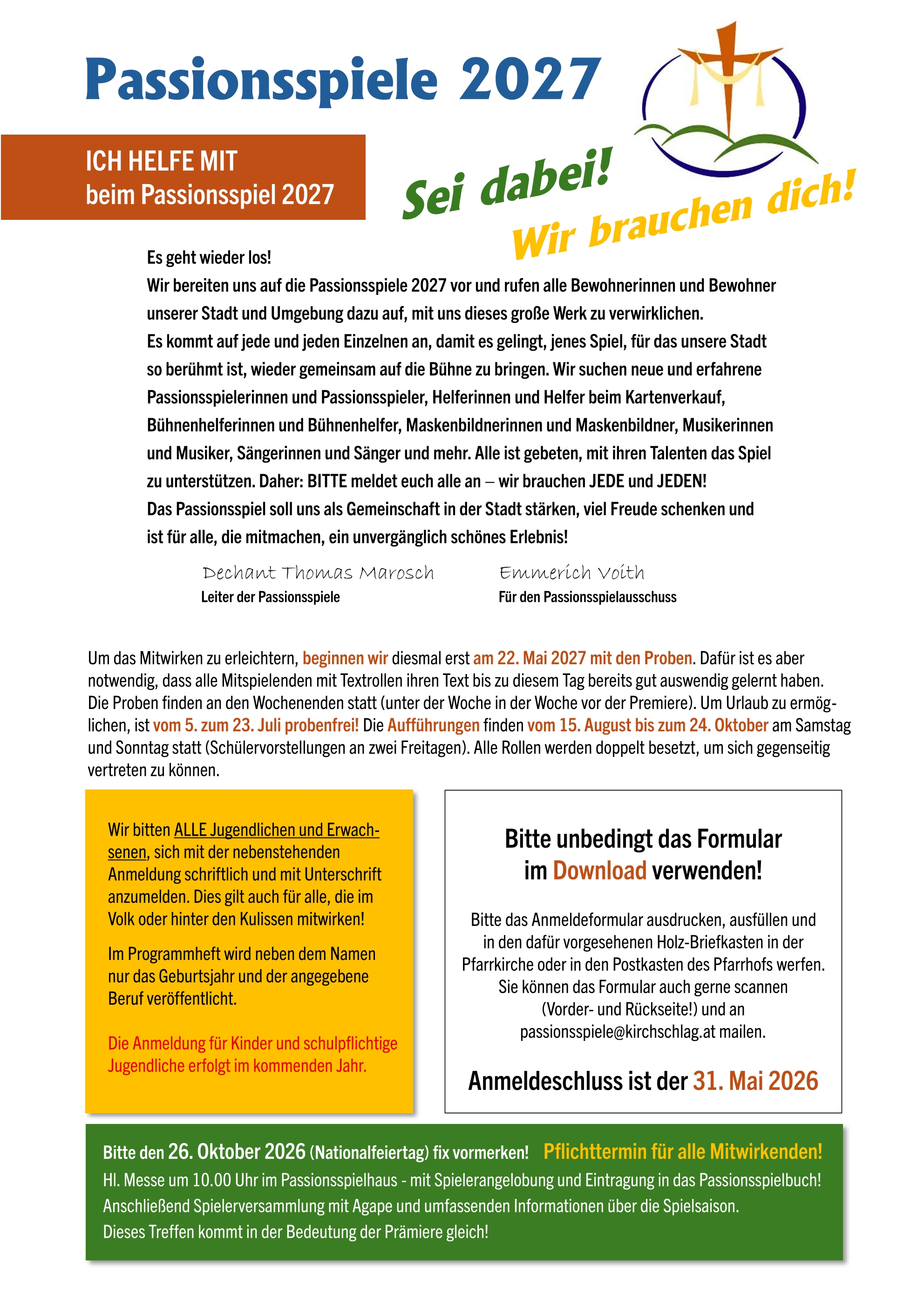 Anmeldung zum Mitwirken bei den Passionsspielen 2027