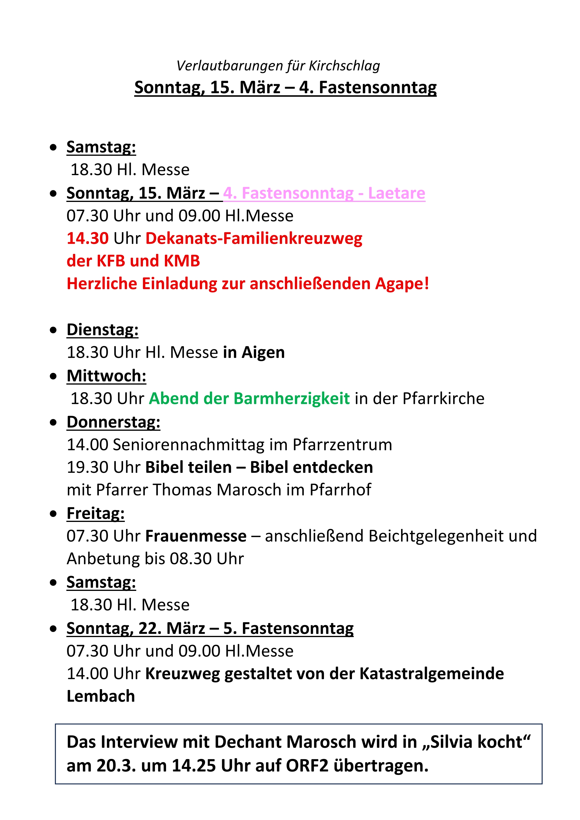 Fastenpfad in der Pfarrkirche Kirchschlag