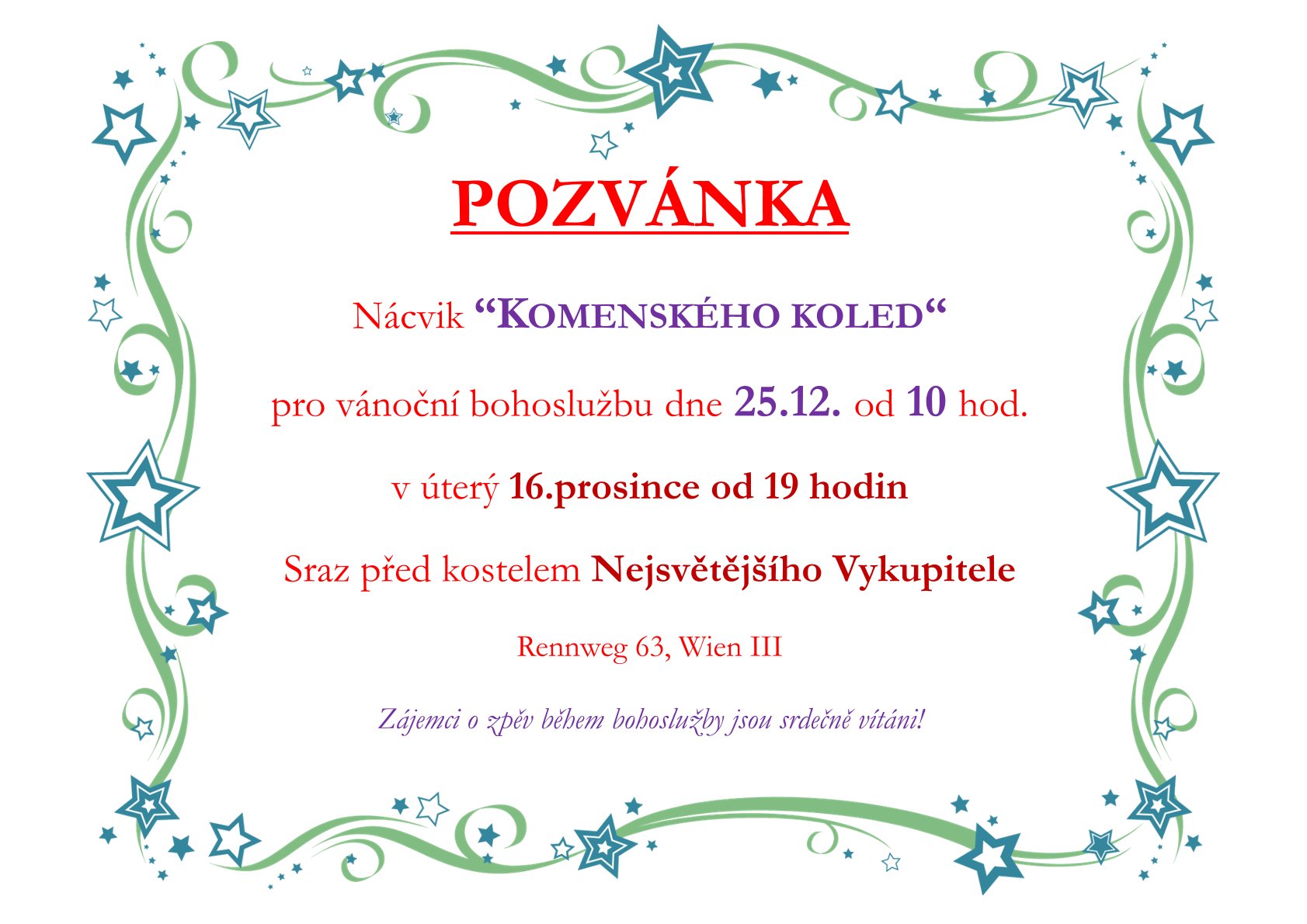 Neděle 26.10. od 08.00 a 10.00 hodin