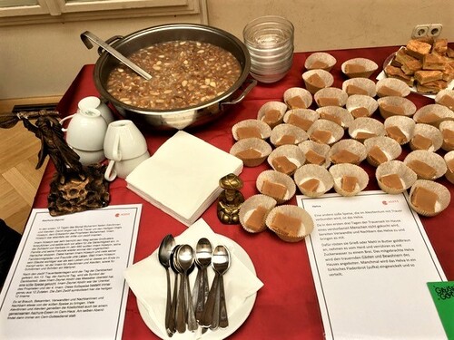 Vor diesem Hintergrund sind bei der Langen Nacht der Kirchen auch unterschiedliche Religions- und Glaubensgemeinschaften mit Kirche im Dialog zu Gast in der Schottenpfarre an der Freyung und laden dazu ein, typische Speisen der jeweiligen Tradition zu probieren und dadurch über die unterschiedlichen religiösen Traditionen zu lernen.