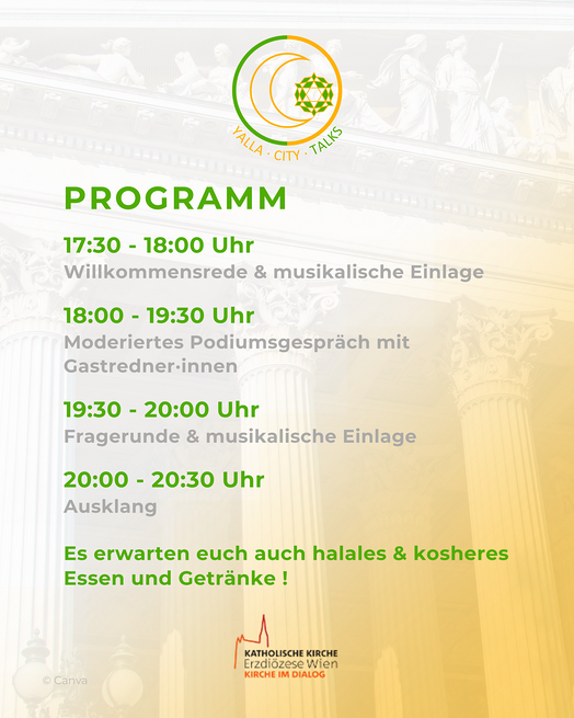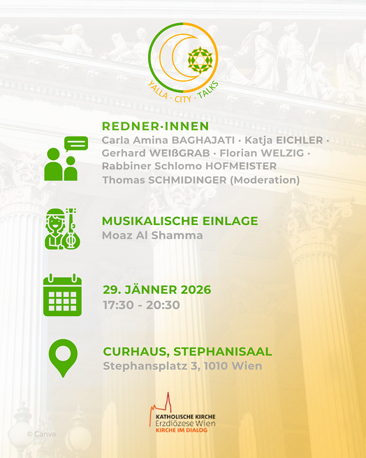 In Zusammenarbeit mit der interreligiösen Initiative Yalla City Walks und Kirche im Dialog laden wir herzlich zum Podiumsgespräch ein und freuen uns auf Ihr Kommen.