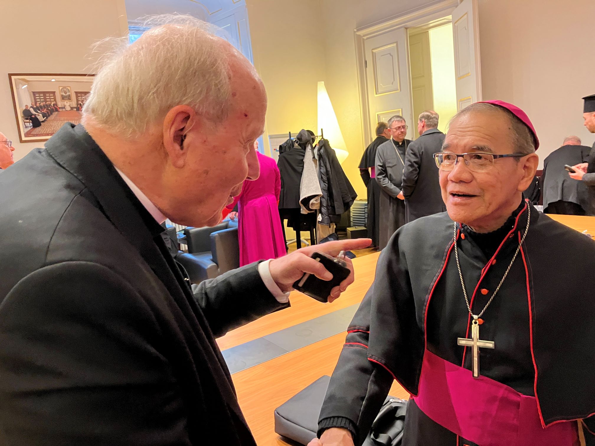 Freudiges Wiedersehen vor der Bischofsweihe: Kardinal Schönborn und Bischof Cortez