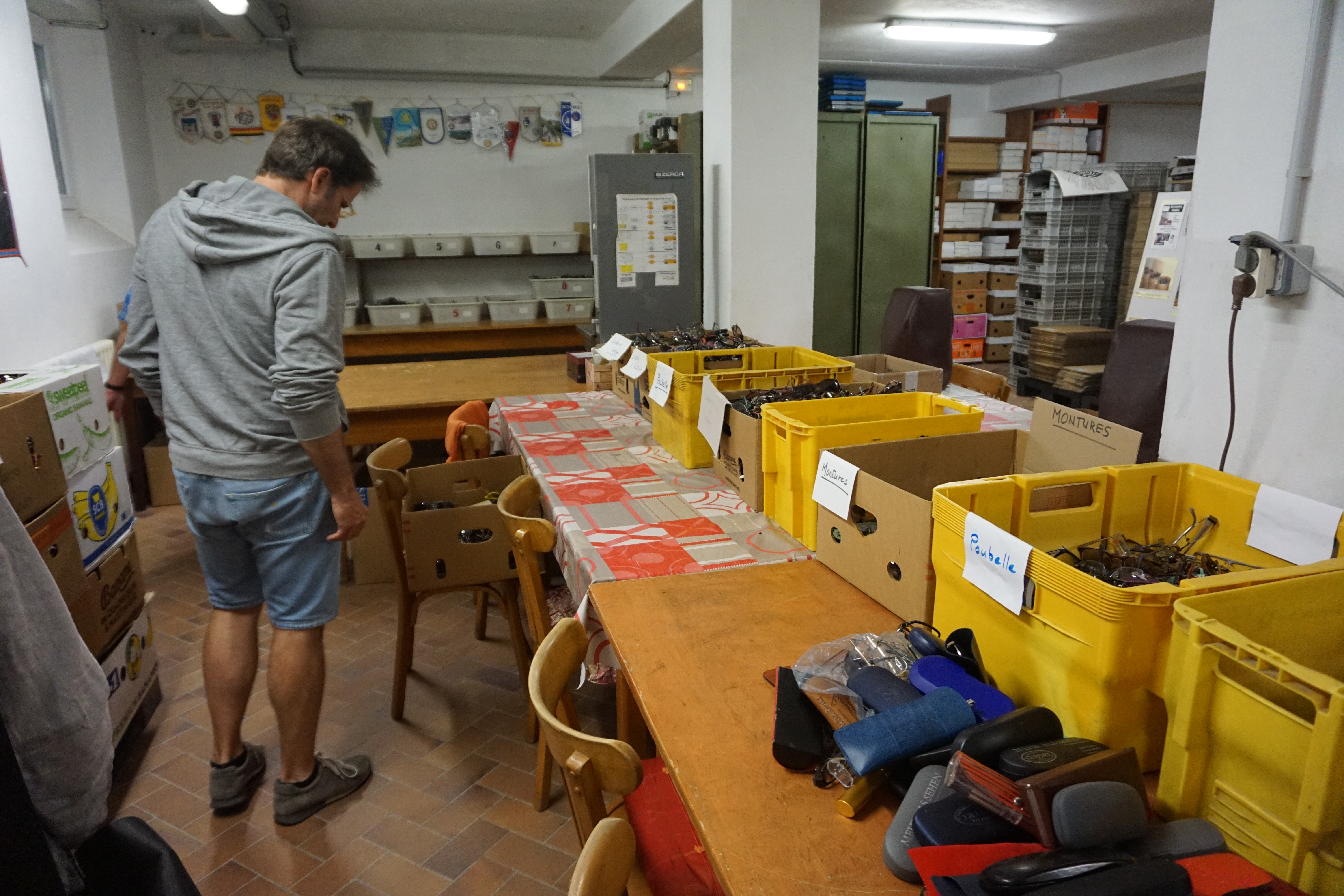Nach mehr als 12 Stunden Fahrt mit einigen Hindernissen wie Staus und mehr als 900 Kilometern erreichten Stephan, Esther und ich bereits im Dunkeln den Ort Hirsingue (Hirsingen). Der Präsident von „Brillen ohne Grenzen“ erwartete uns bereits. Nach dem Entladen zeigte er uns alles und erklärte uns, was nun mit den Brillen geschieht.