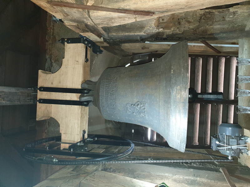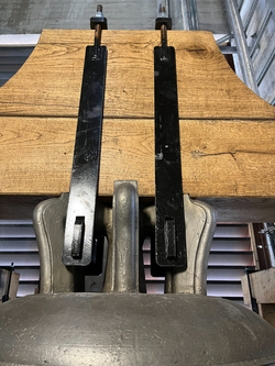 Eichenjoch mit Grundbalken und Kopfholz / Sechs-Henkel-Krone / Rundballenklöppel