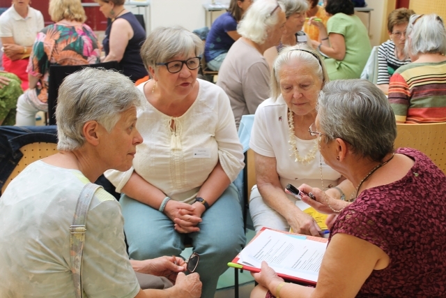 Außerdem gaben die Arbeitkreis-Leiterinnen einen Ausblick auf die Schwerpunkte im neuen Arbeitsjahr: Pilgertag, Familienfasttag zu „Klimagerechtigkeit“, Forumtheater zum Equal-Care-Day am 29.2.24, Regionalimpulstreffen u.a. wurden vorgestellt. Silvia Schreyer-Richtarz gab einen Überblick über die Finanzen 2022 und die Pfarren Kirchschlag und Zöbern gewannen bei der Verlosung für die Rücksendung der korrigierten Mitgliederlisten und der Rückmeldebögen Gutscheine für Bildungsveranstaltungen. Danach gab es die Möglichkeit, Bildungsangebote & Referentinnen zum Jahresthema kennenzulernen, z.B. “Zwischen Armut und Reichtum – was ist sozial gerecht?“, „Wer oder was ist meiner Sorge wert?“ sowie “Dorf-Spaziergänge zu Care“. Versorgt mit Behelfen und hochmotiviert machten sich die Frauen wieder auf den Heimweg in ihre Pfarren.