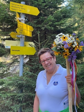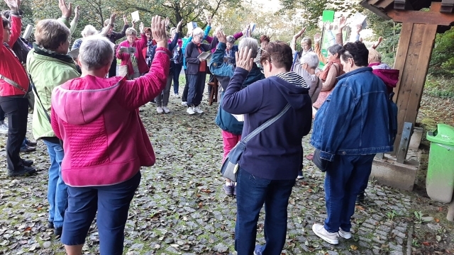Zeit zu leben war das verbindende Motto, unter dem der Tag stand. Unterwegs luden die Wegbegleiterinnen, die die Gruppen führten, mit spirituellen Impulsen und Liedern zum Innehalten ein. Jede Gruppe trug einen Pilgerstab mit, der mit Kräutern und Blumen geschmückt war und zu Beginn des Tages gesegnet wurde.