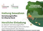 Herzliche Einladung zum Vernetzungs-treffen am Mittwoch, 4. März 2026 19:00 bis ca. 20:45 Uhr für alle Schöpfungsverantwortlichen und Interessierten der Pfarren. Thema: „Haltung bewahren“: Impulsgedanken von Weihbischof BV Stephan Turnovszky, Hauptreferat Rudolf Anschober. Keine Teilnahmegebühr aber Anmeldung ist erforderlich.