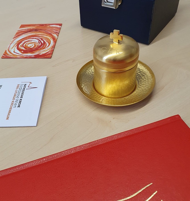 Für Priester, die von unserem Erzbischof mit der Firmspendung in der Erzdiözese Wien beauftragt wurden, haben wir in den vergangenen Monaten 20 hygienische Chrisamgefäße mit Transportschatullen anfertigen lassen.