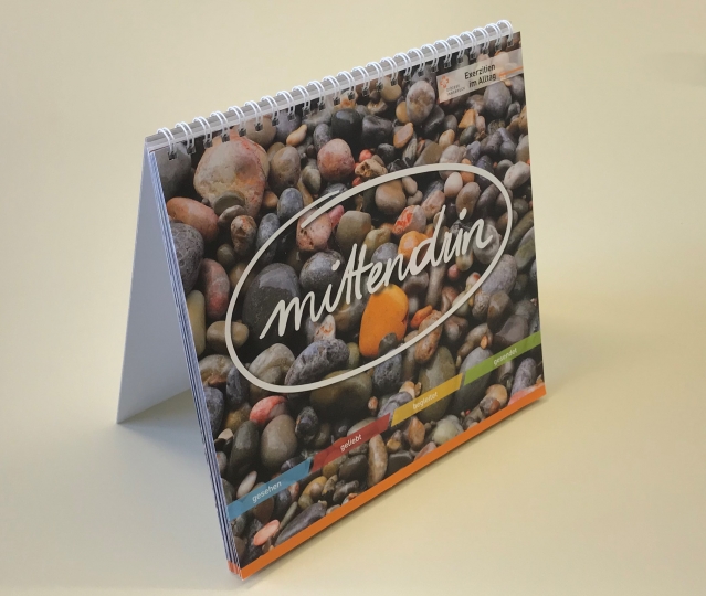 einem spiralierten Exerzitienheft mit 26 heraustrennbaren grafisch gestalteten Seitenstreifen 21 x 21 cm.