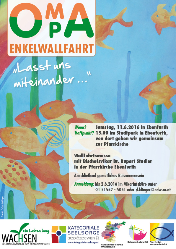 Am Samstag, 11. Juni findet um 15:00 Uhr in Ebendfurth eine Oma-Opa-Enkelwallfahrt der Seniorenpastoral der Erzdiözese Wien statt.