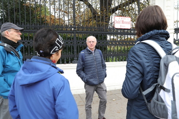 Der Weg führte entlang dieser Route zur Kirche St. Ulrich im 7. Bezirk, wo der erste Halt zur Besinnung stattfand, begleitet von Gitarrenmusik. Auf dem Hinweg wurden der Volksgarten, auf dem Rückweg der Burggarten durchquert, wo einige Minuten in Stille und im Schauen gegangen wurden.
