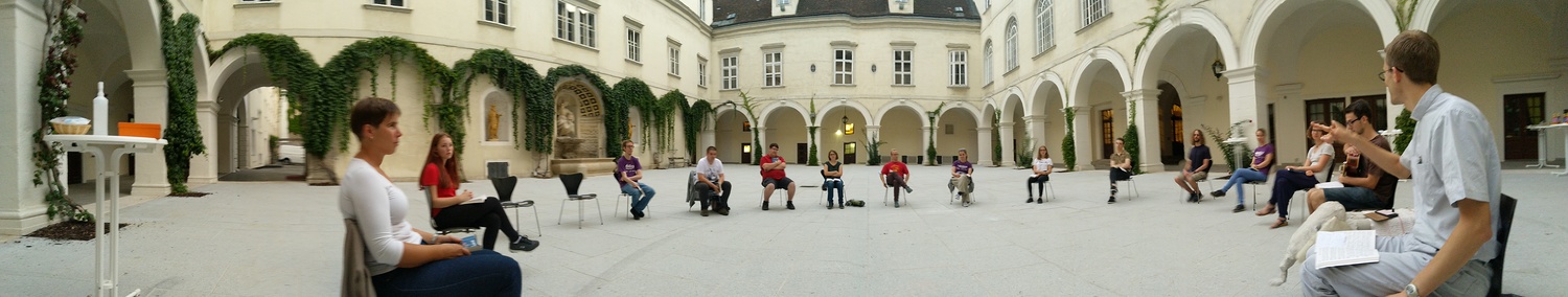 Im Anschluss wurde im Innenhof des Erzbischöflichen Palais, welcher genug Luft und Abstand bot, noch länger miteinander geredet, Ideen und Erfahrungen ausgetauscht usw.