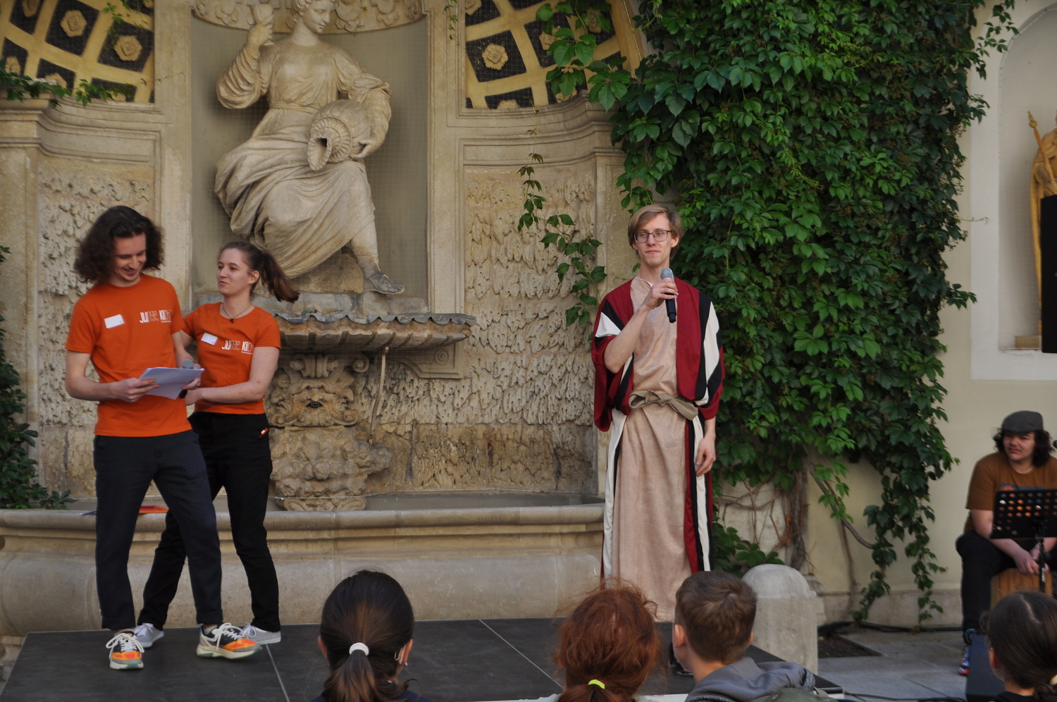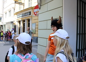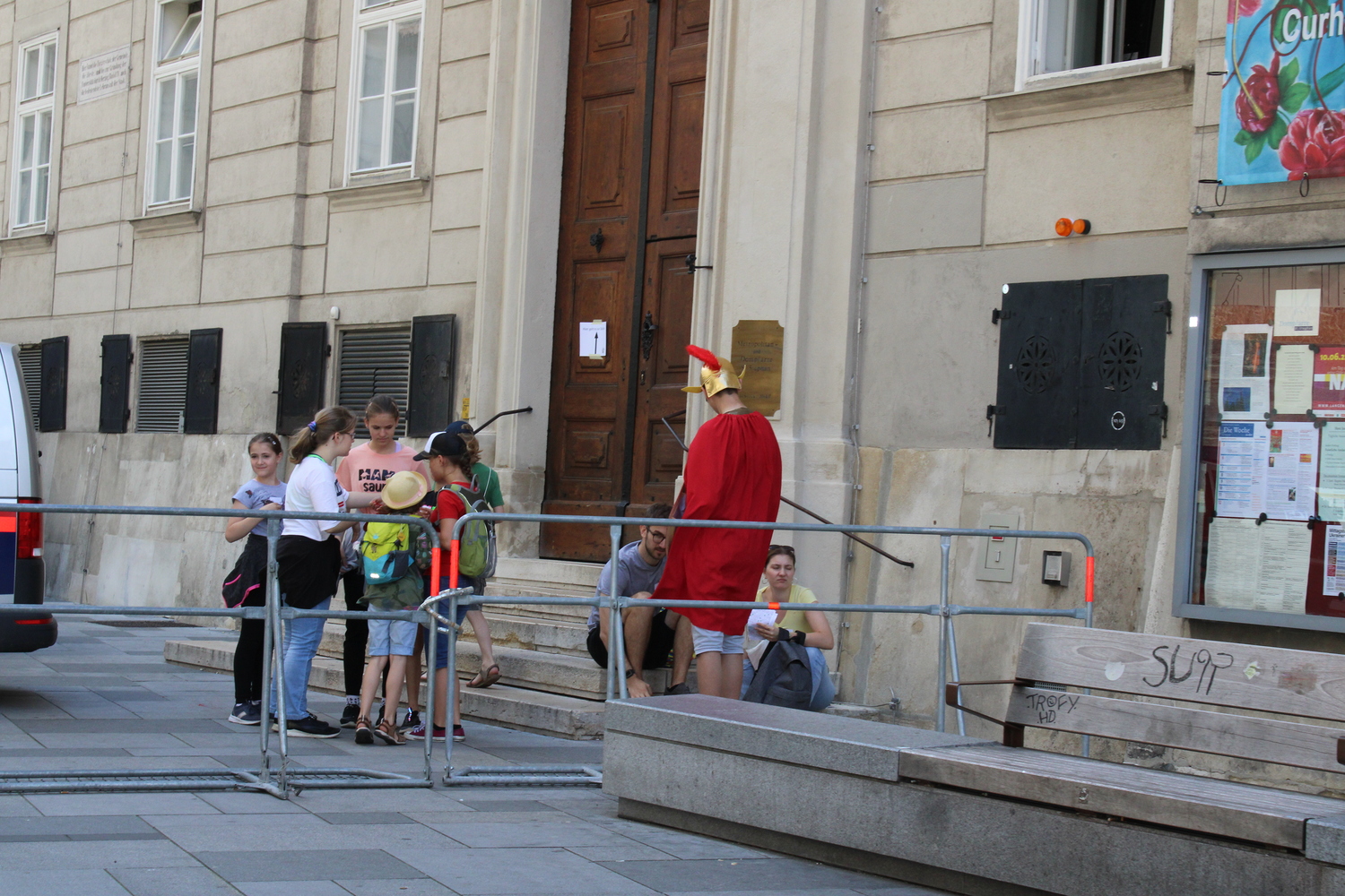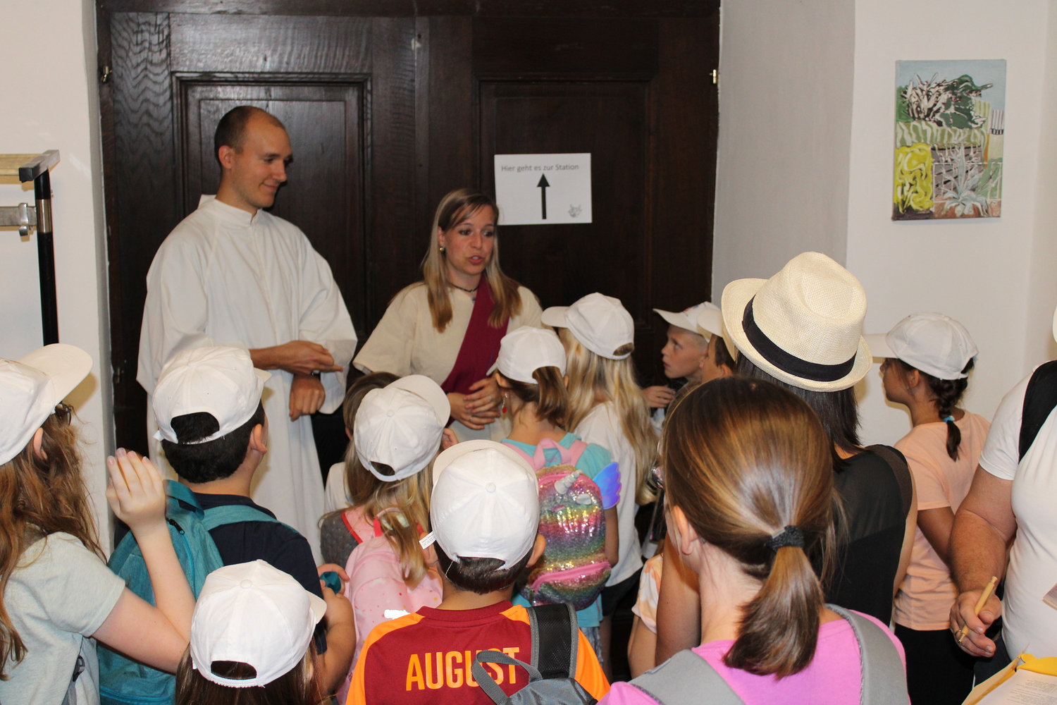Vor der Dominikanerkirche waren Ochs und Esel -die beiden haben gerne erzählt, was sich zu Weihnachten ereignet hat. In der Krypta der Peterskirche trafen die Minigruppen einen Mann in einem leuchtendem Gewand und eine Frau, die auf der Suchen nach Jesus waren. Nach ein paar Rätseln war klar: Jesus ist auferstanden!
