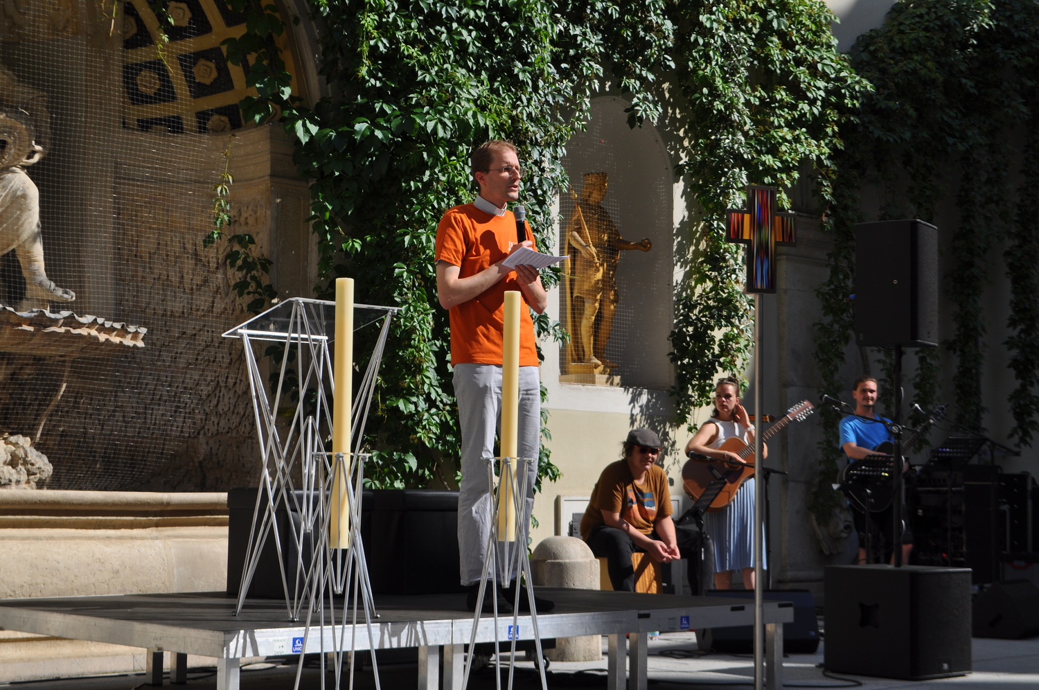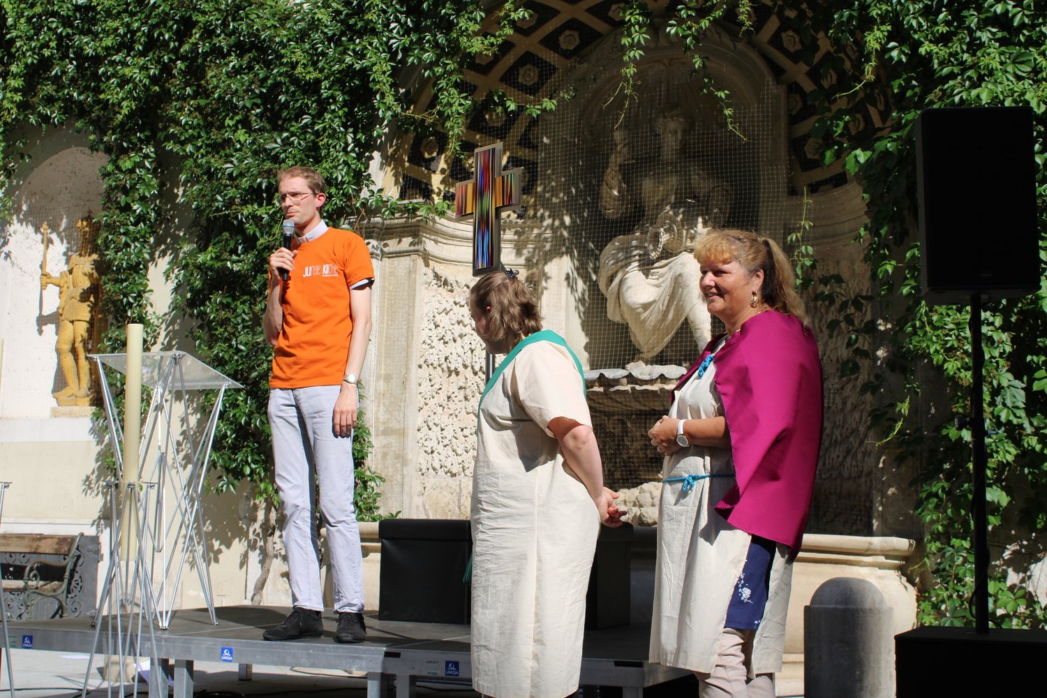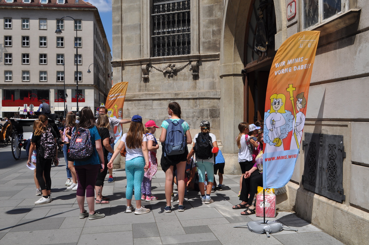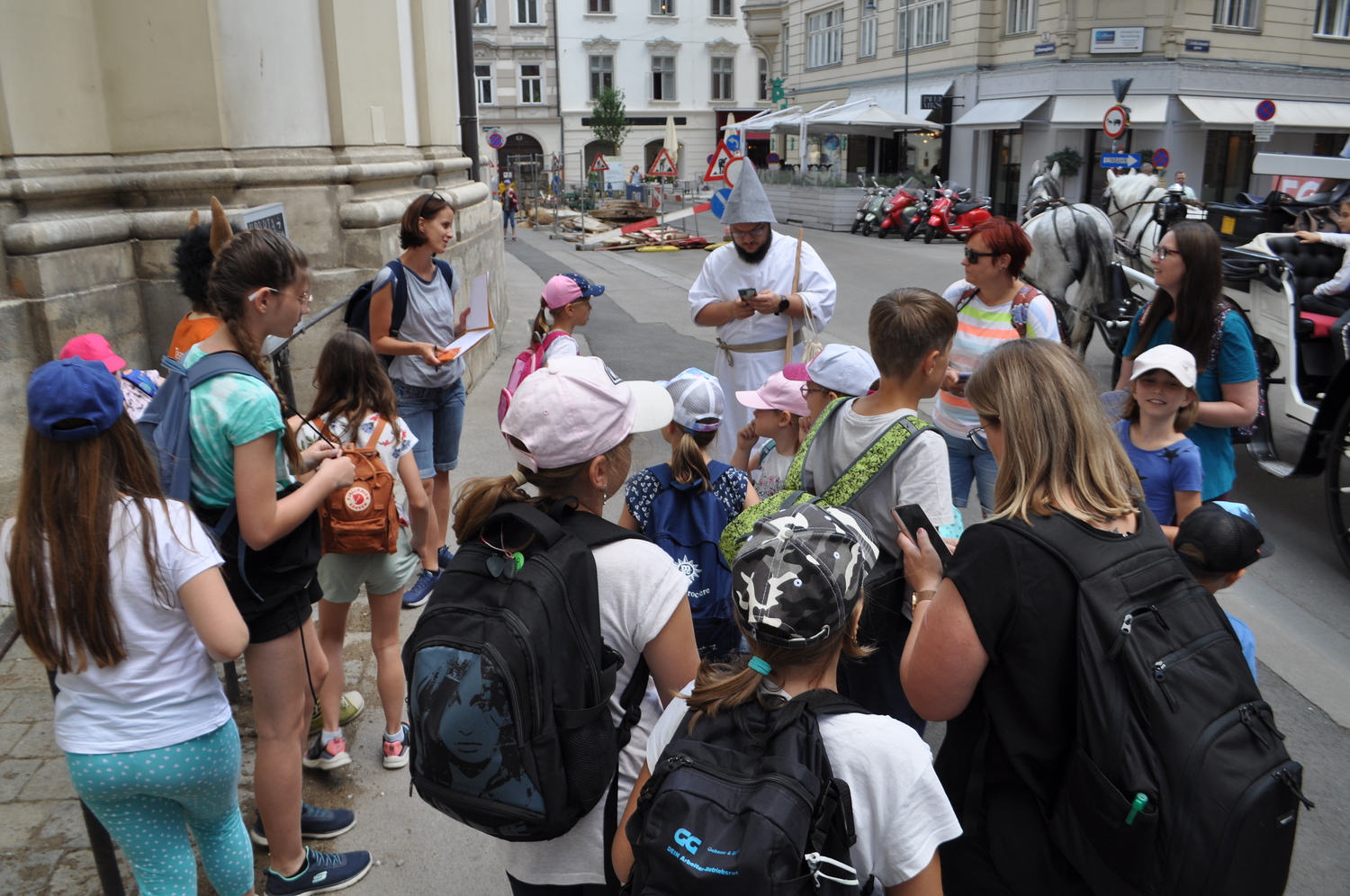 Vor der Dominikanerkirche waren Ochs und Esel -die beiden haben gerne erzählt, was sich zu Weihnachten ereignet hat. In der Krypta der Peterskirche trafen die Minigruppen einen Mann in einem leuchtendem Gewand und eine Frau, die auf der Suchen nach Jesus waren. Nach ein paar Rätseln war klar: Jesus ist auferstanden!