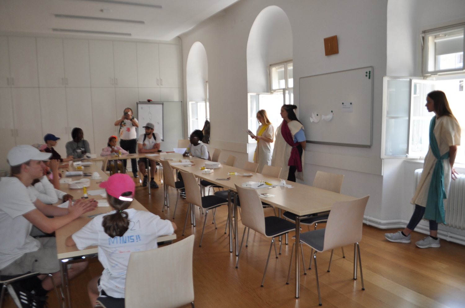 Die Notizzettel von Lukas, die die Minigruppen an den verschiedenen Orten bekommen haben, brachten sie in das Erzbischöfliche Palais zur Schreibwerkstatt von Lukas.