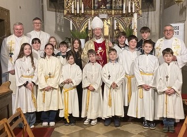 Am Donnerstag, 19.3.26 feierte Weihbischof Turnovszky die Visitationsmesse in Hauskirchen. Davor traf unser Weihbischof eine große Schar von Ministranten und Ministrantinnen im Pfarrhof.