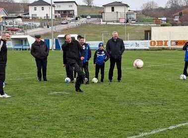 Am Fußballplatz in Hauskirchen traf Weihbischof Turnovszky anlässlich der Visitation auf sportbegeisterte Kinder und Jugendliche. Beim Toreschießen hatten alle viel Spaß und Freude.