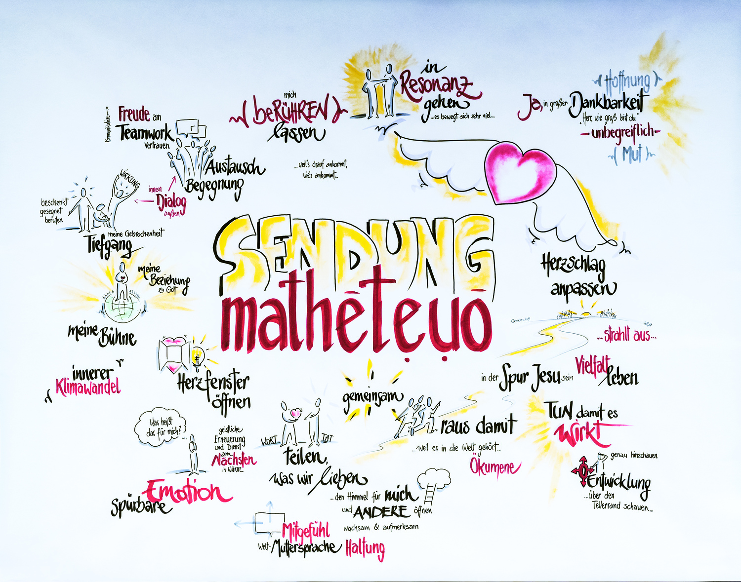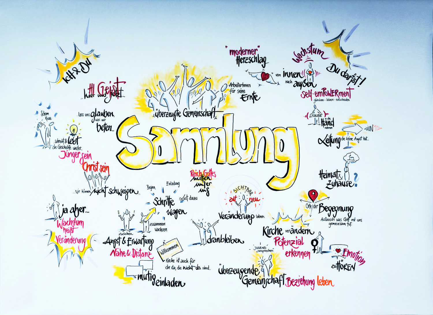 Erstmalig gibt es bei einer Diözesanversammlung ein zusätzliches Highlight. Die visuelle Simultanübersetzerin Anna Egger bringt ihre Eindrücke über die Versammlung in Form eines Graphic Recordings auf Papier.