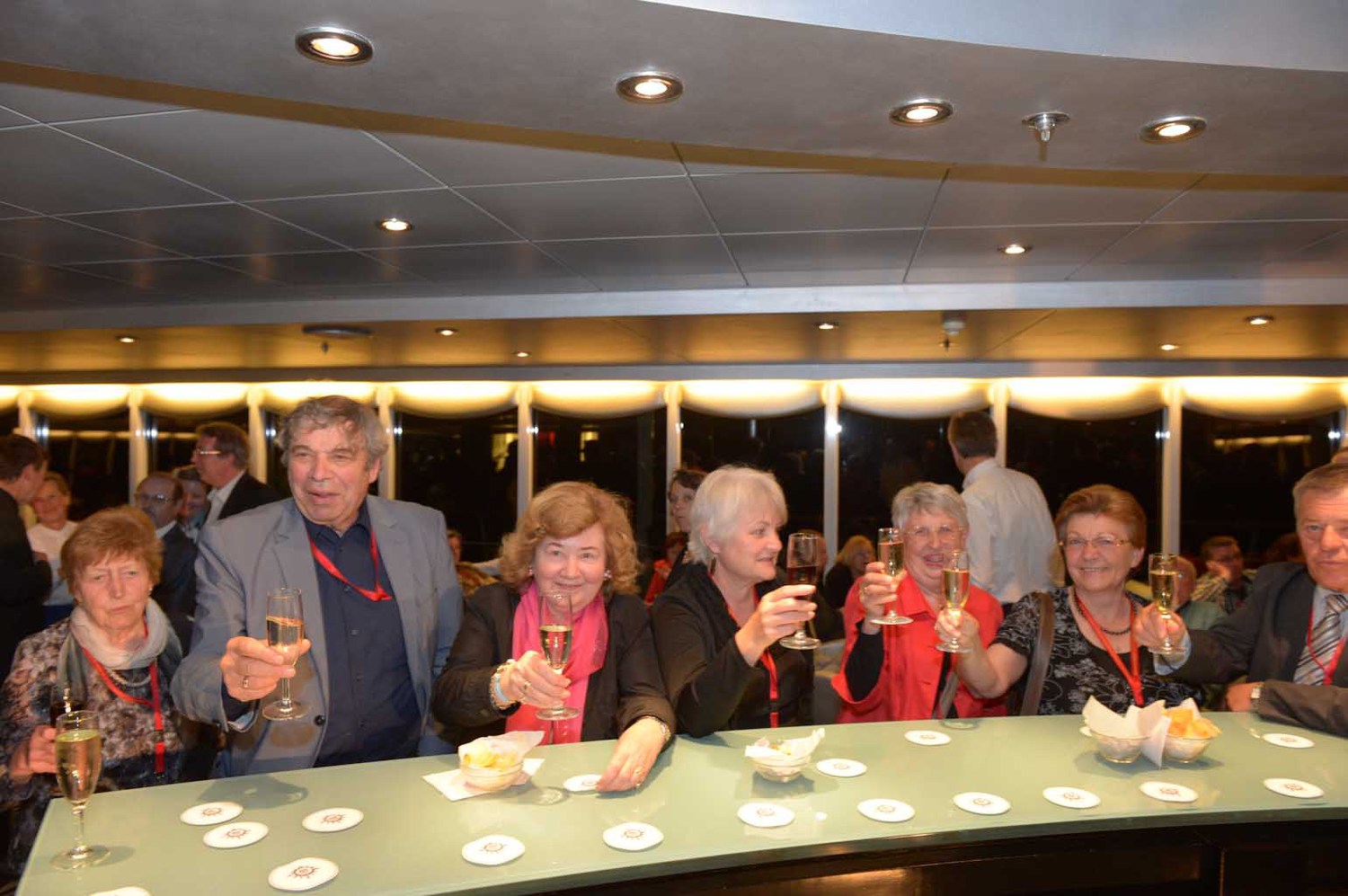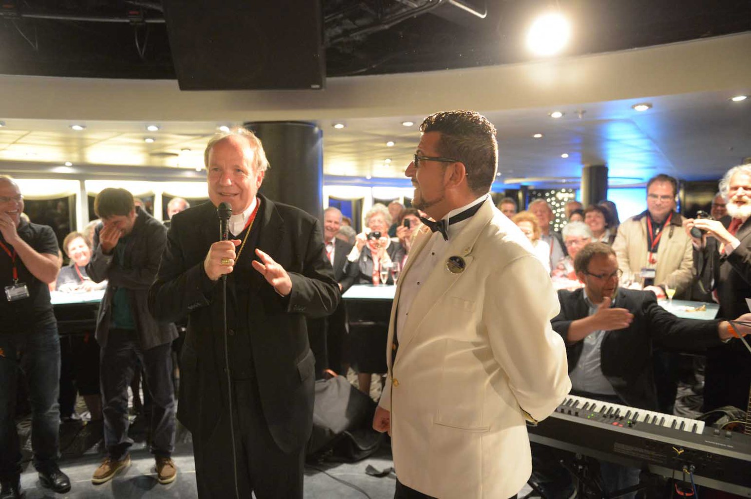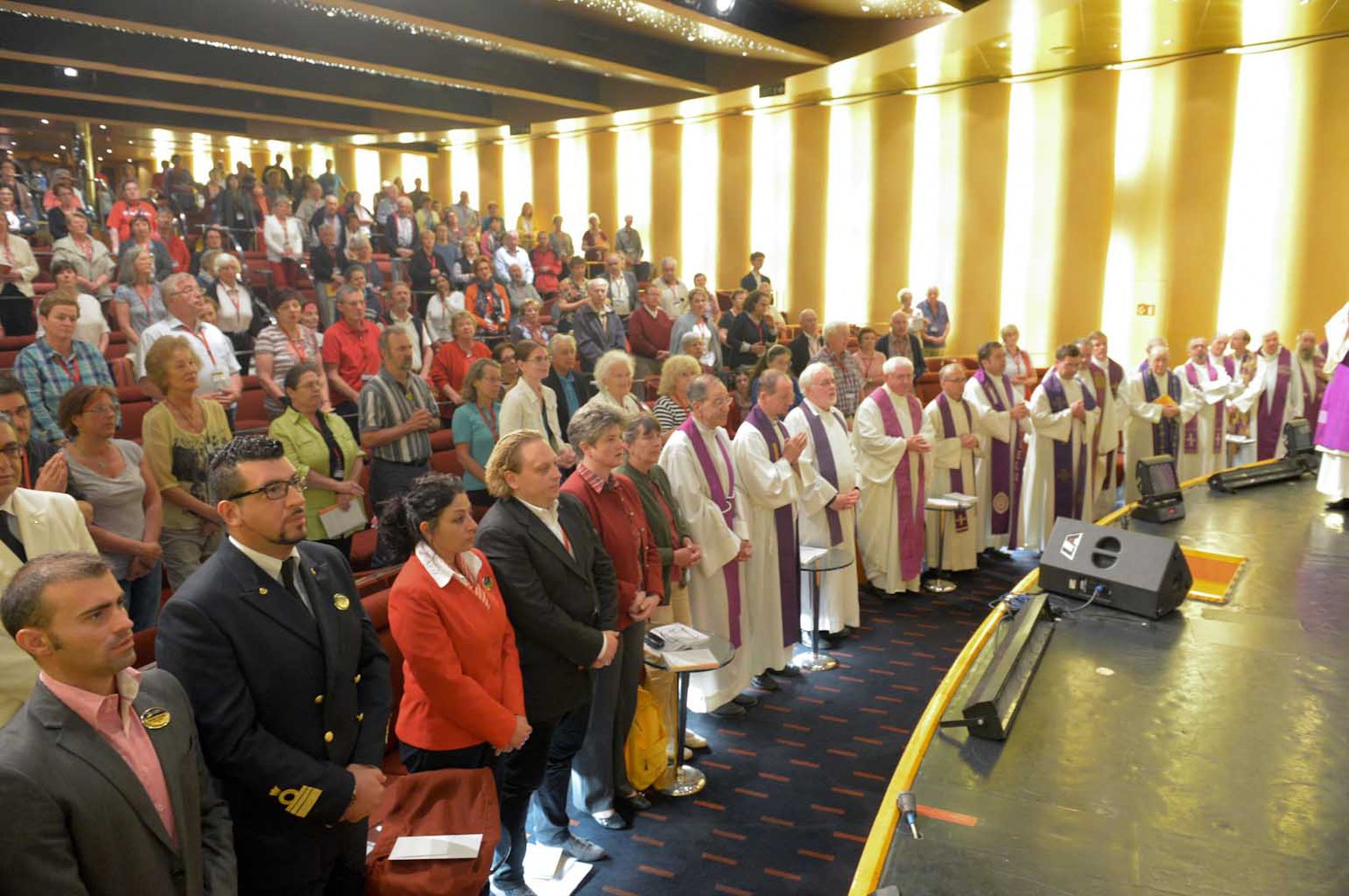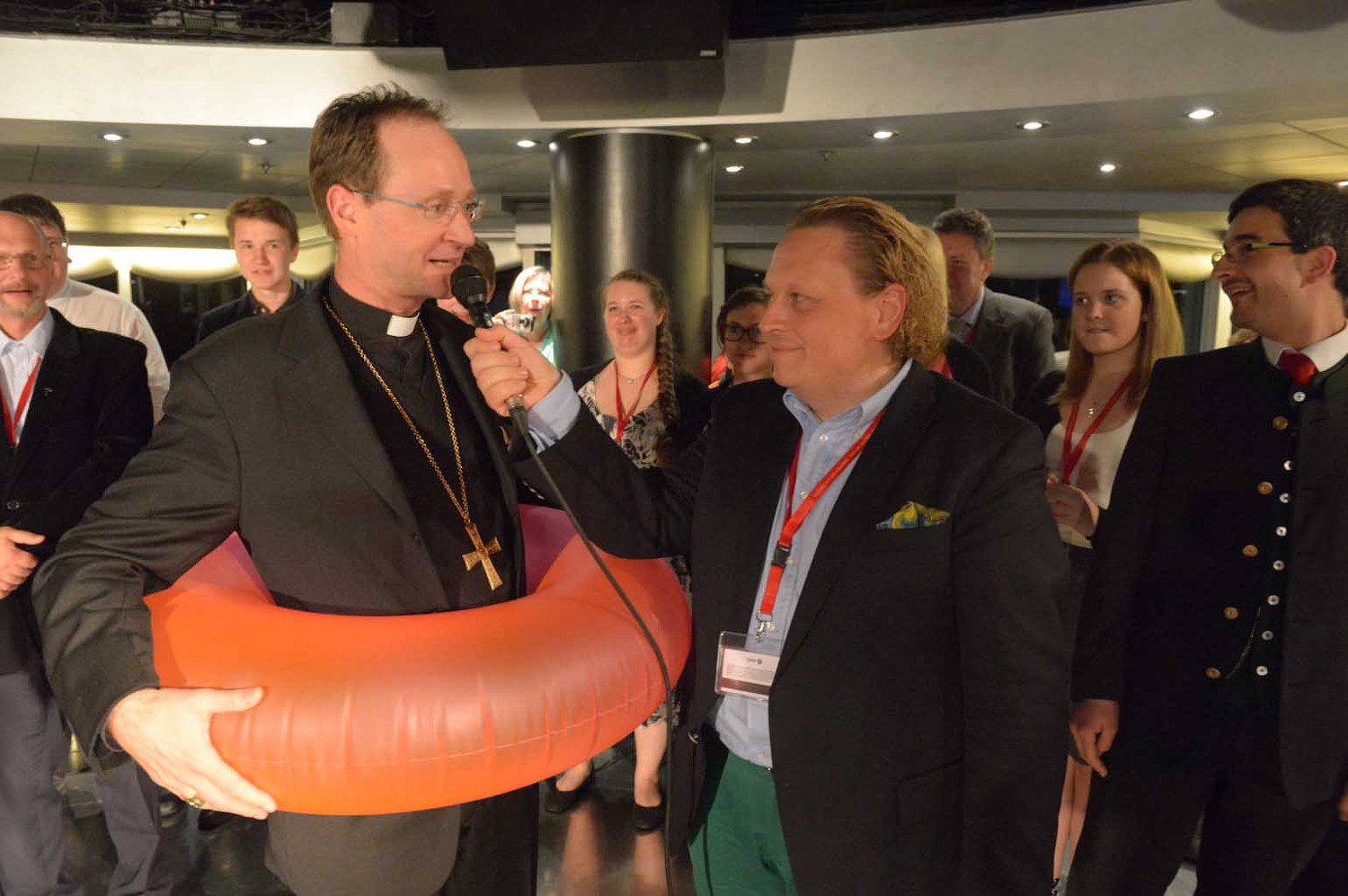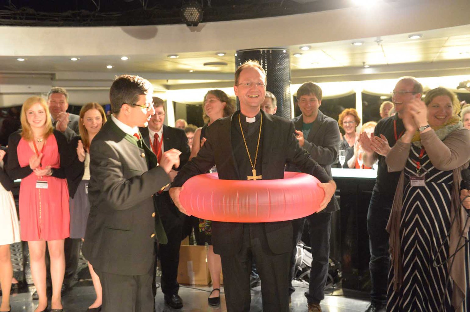 Zum gut katholischen Wallfahren gehört auch das ausgelassene Feiern, Singen, einfach eine lustige Zeit miteinander haben. Die große Pilgerschar und die Besatzung des Schiffes wächst stetig zusammen.