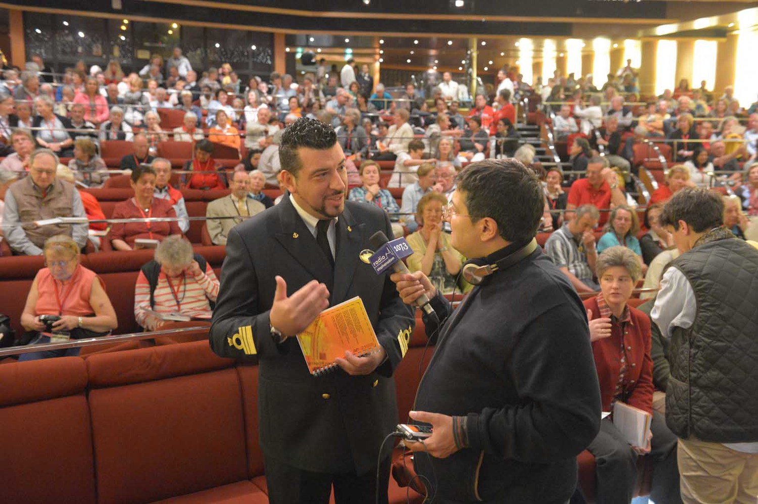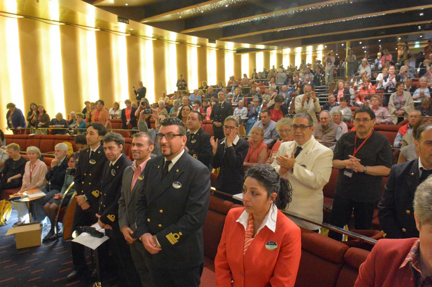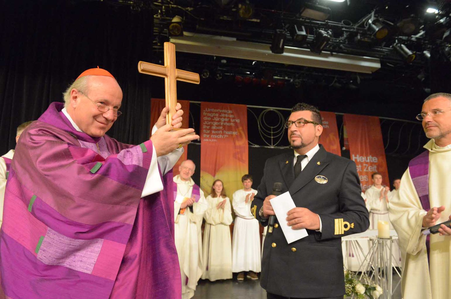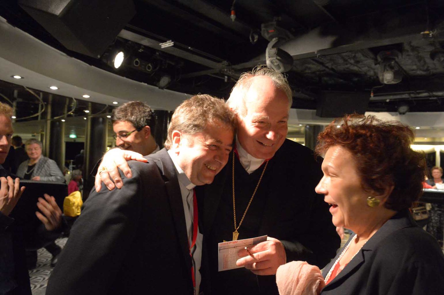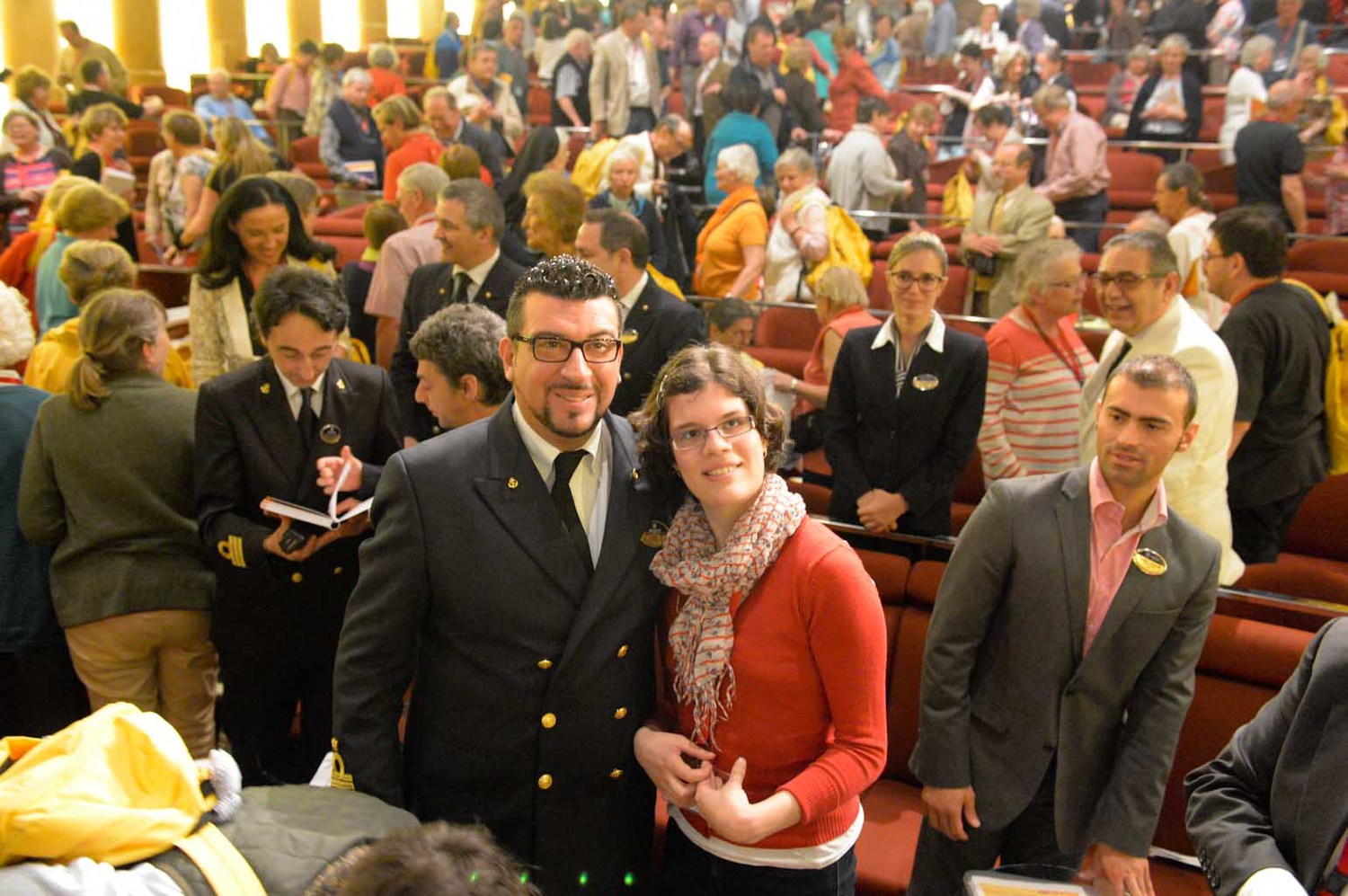Zum gut katholischen Wallfahren gehört auch das ausgelassene Feiern, Singen, einfach eine lustige Zeit miteinander haben. Die große Pilgerschar und die Besatzung des Schiffes wächst stetig zusammen.