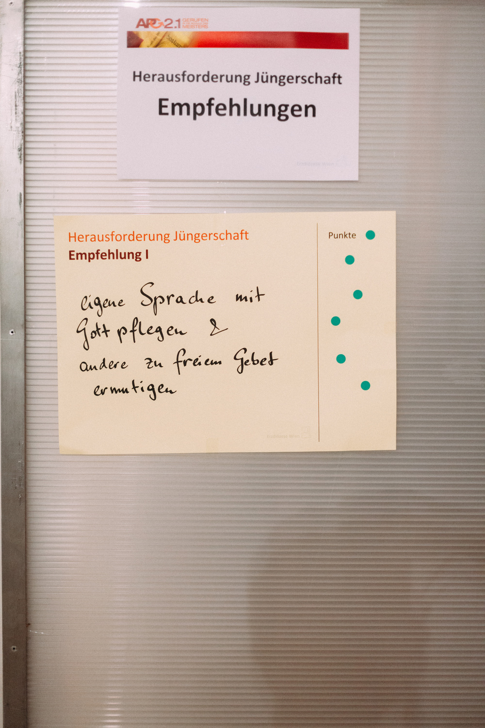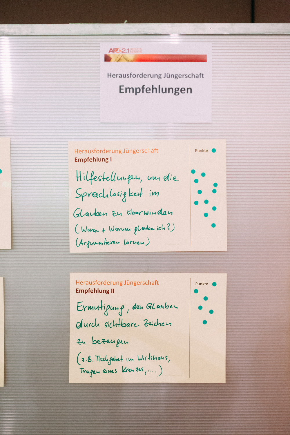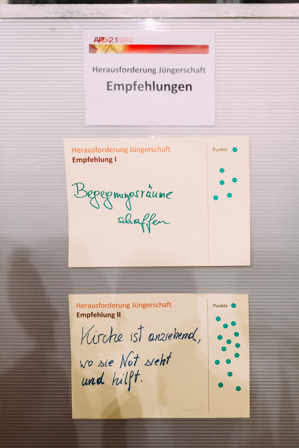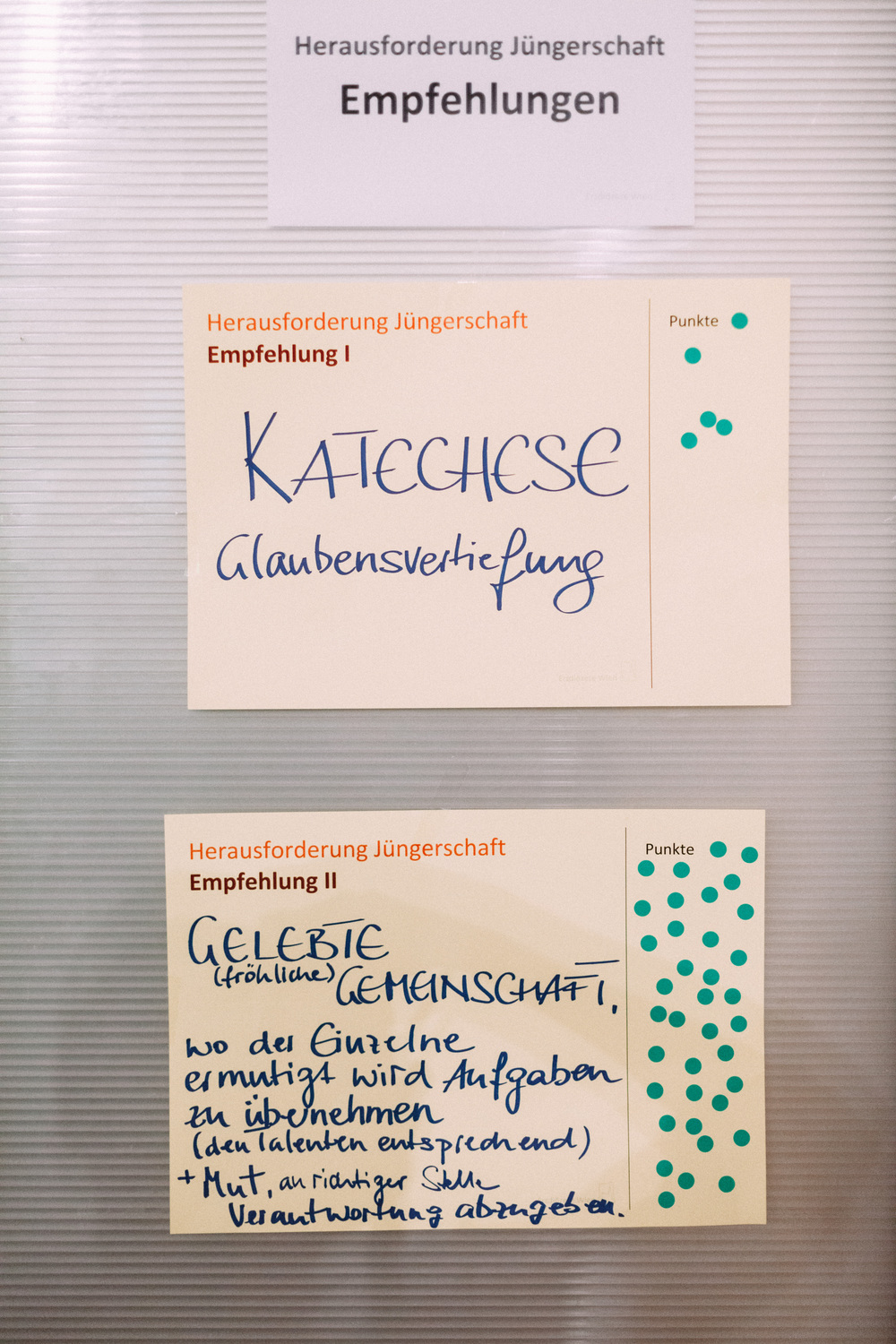 Die Teilnehmerinnen und Teilnehmer am Tag der Räte haben dem Erzbischof und der Steuerungsgruppe des Diözesanprozesses ihre Empfehlungen zu den Themen "Jüngerschaft" und "Mission" festgehalten. Im November wird der Erzbischof den neu errichteten Entwicklungsräumen einen konkreten Auftrag geben gemäß der Frage: "Wie geschieht in diesem Gebiet Mission?"