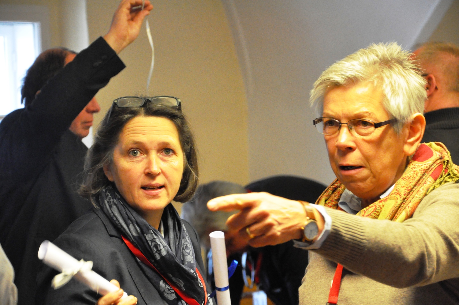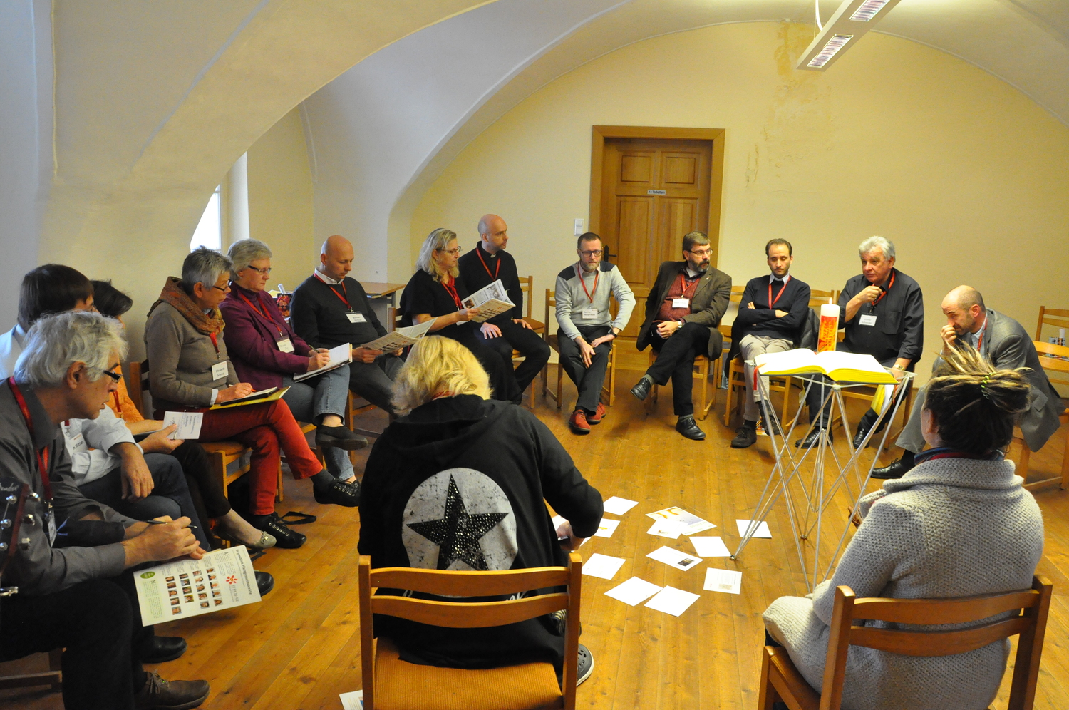 Aus einem Pool von rund 50 Ideen zur Zusammenarbeit im Entwicklungsraum schöpften die Teilnehmenden Inspiration und konnten Juraj Bohynik und Regina Fellner aus einer Landpfarre mit Teilgemeinden sowie Wolfgang Zecha aus der Pfarre zur Frohen Botschaft zur Pfarre Neu Löcher in den Bauch fragen.