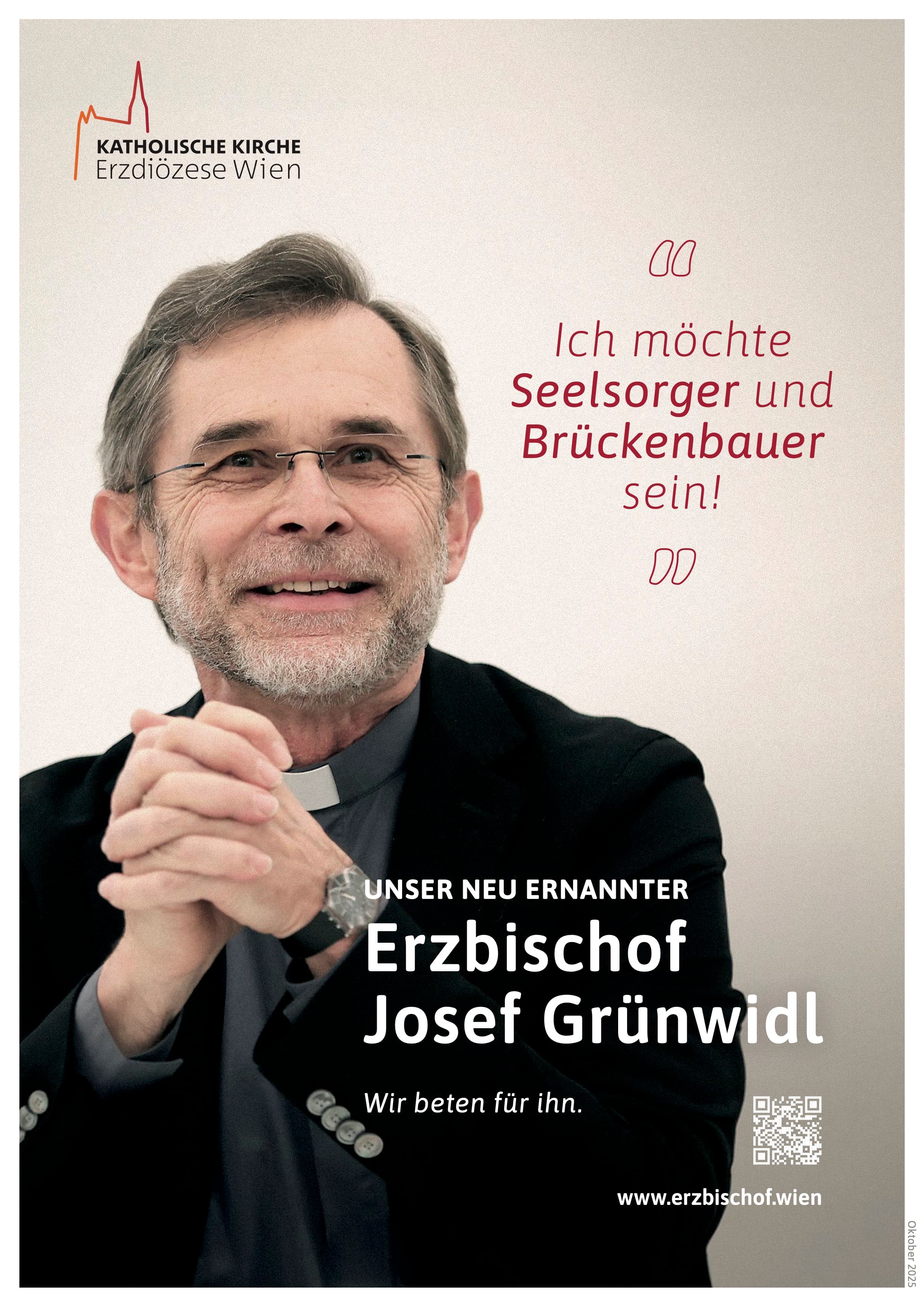 Bitte fügen Sie in Ihren Bericht nach Möglichkeit auch einen Link zur Website unseres neu ernannten Erzbischofs (www.erzbischof.wien) ein und/oder drucken Sie den dazugehörigen QR-Code ab.