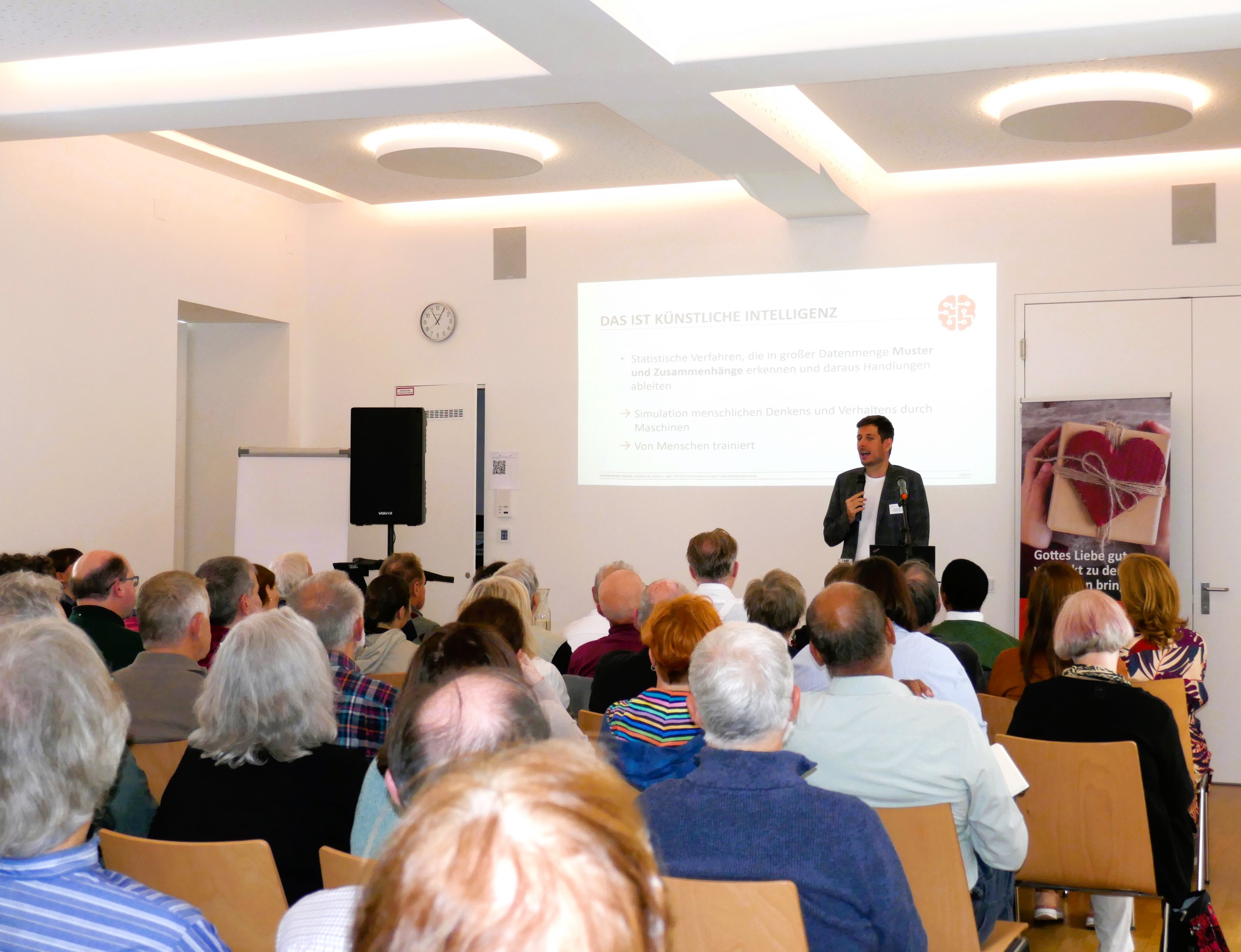 Oliver Steinringer aus dem Presseteam der Erzdiözese Wien präsentierte charmant das Thema „Künstliche Intelligenz“ und nahm der „unbekannten Größe“ die Unnahbarkeit. Er zeigte, dass man mit KI ganz lässig kommunizieren kann, jedoch immer mit einer gewissen Vorsicht.