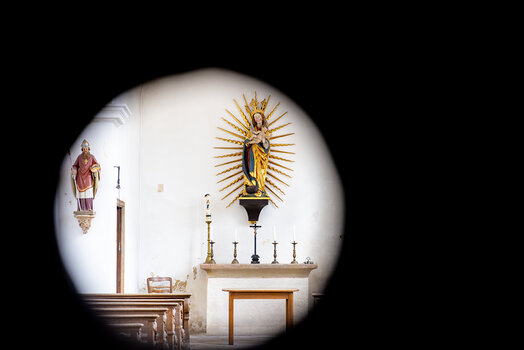 Darstellungen des dreifaltigen Gottes, die Muttergottes, Engel und Heilige warten als Skulpturen, auf Bildern, Glasfenstern, Fresken und Reliefs darauf, von uns entdeckt und näher betrachtet zu werden.