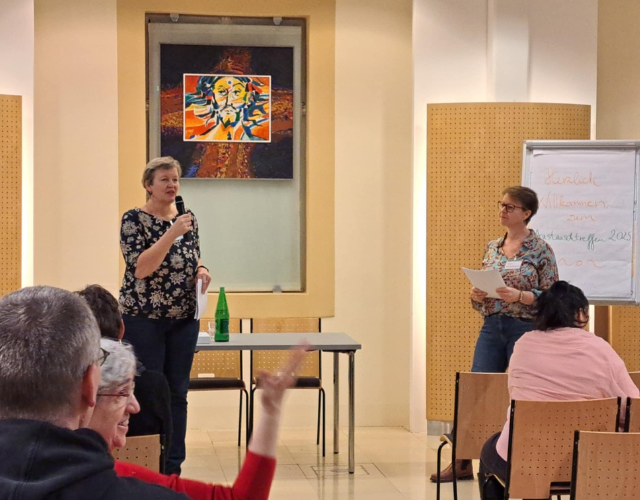 Zwischen all diesen Teilen gab es kurze Phasen des „Sickern-Lassens“ bzw. des Austausches in Kleingruppen. Dann leitete die Referentin ein Körpergebet an, um über Leiblichkeit nicht nur einen Impuls zu hören, sondern etwas auch leiblich zu tun.