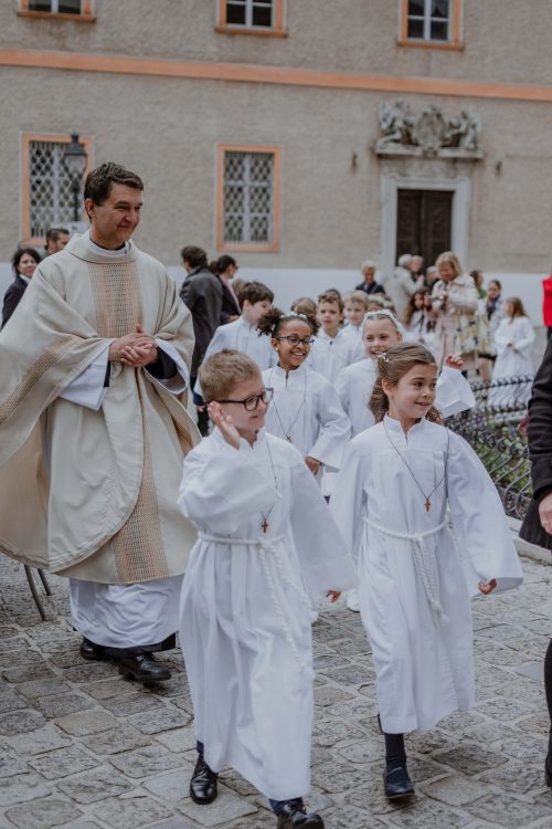Die Heilige Eucharistie ist eines der 7 Sakramente. Nach der Taufe, die meist im Kleinkindalter stattfindet, haben Kinder – üblicherweise in der 2. oder 3. Klasse Volksschule – die Möglichkeit sich auf das Fest der Erstkommunion vorzubereiten.